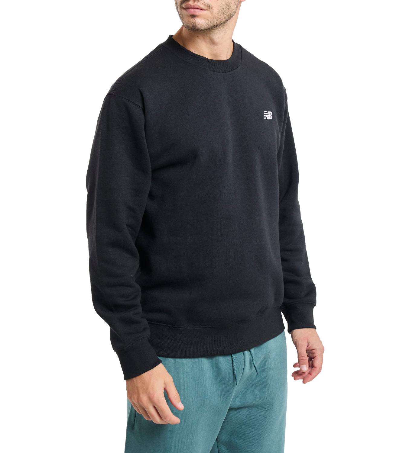 Felpa nera New Balance girocollo in cotone felpata all'interno con logo bianco sul petto vestibilità regolare