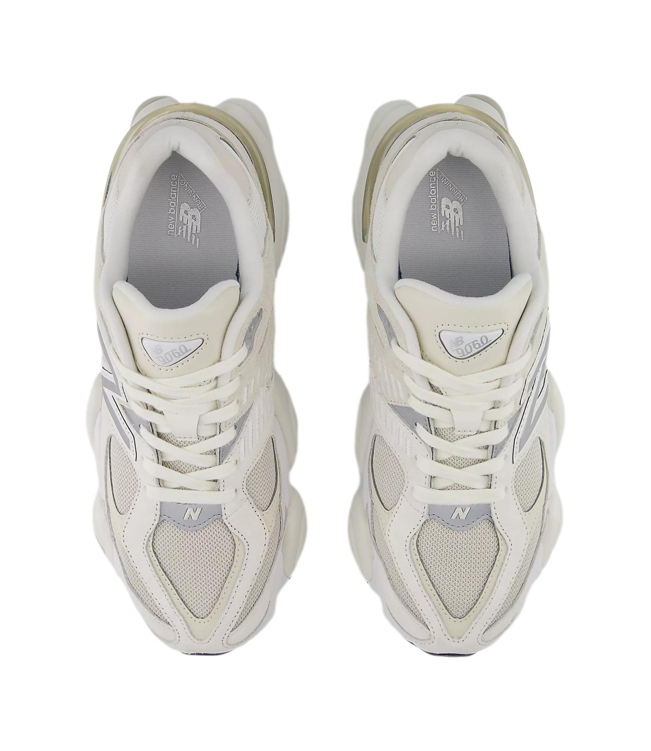 New Balance 9060 sneakers bianca donna e grigio chiara, scarpa scamosciata e in tessuto con ammortizzatori grigio chiari
