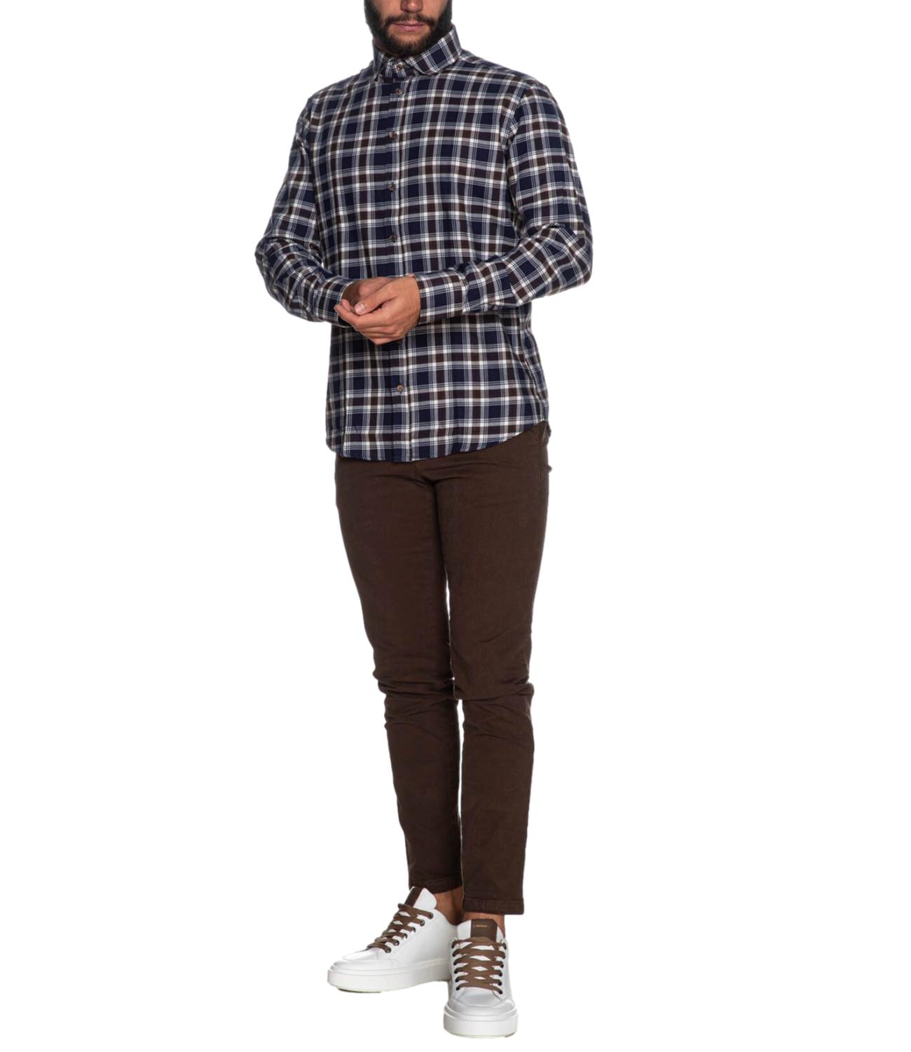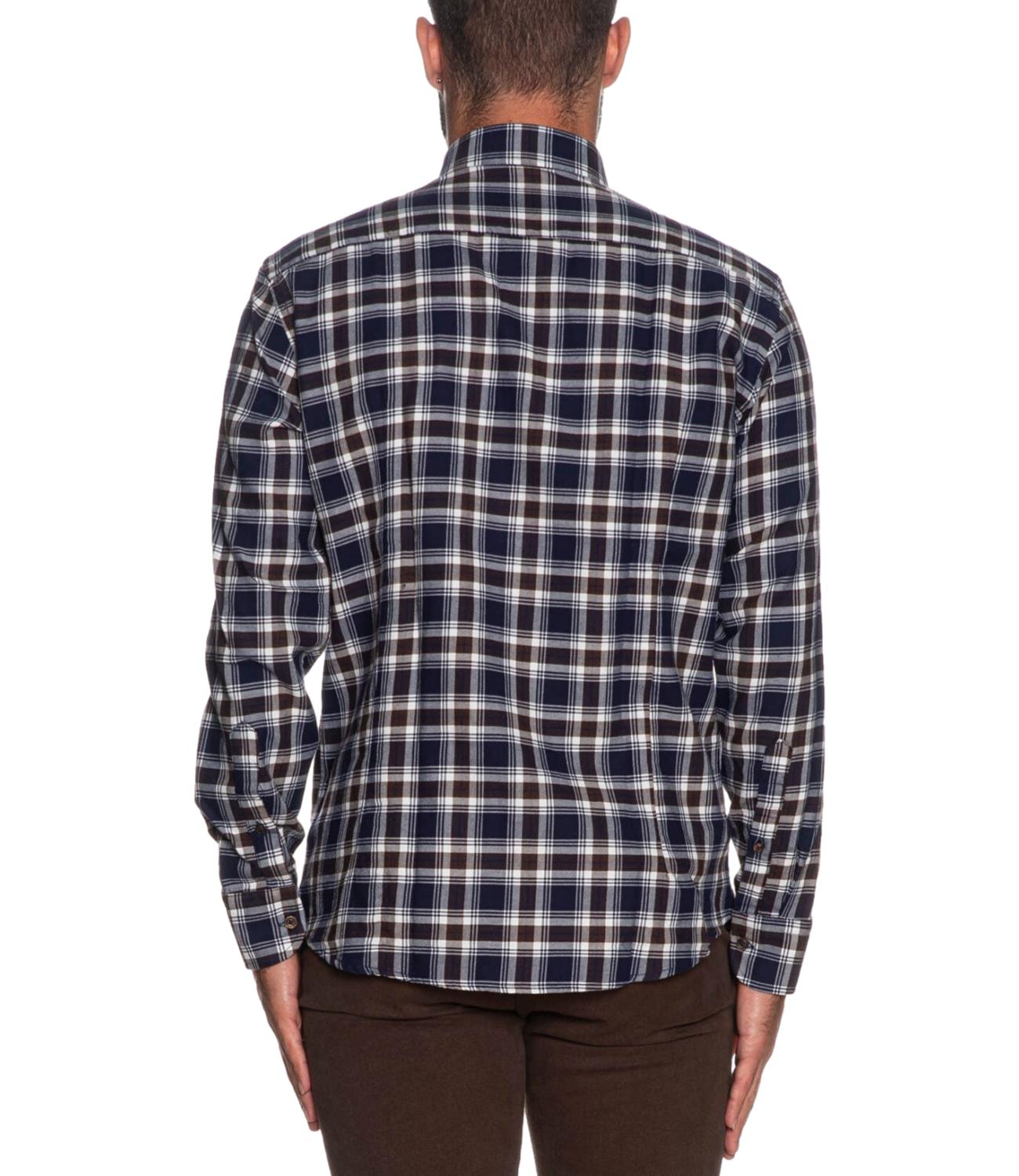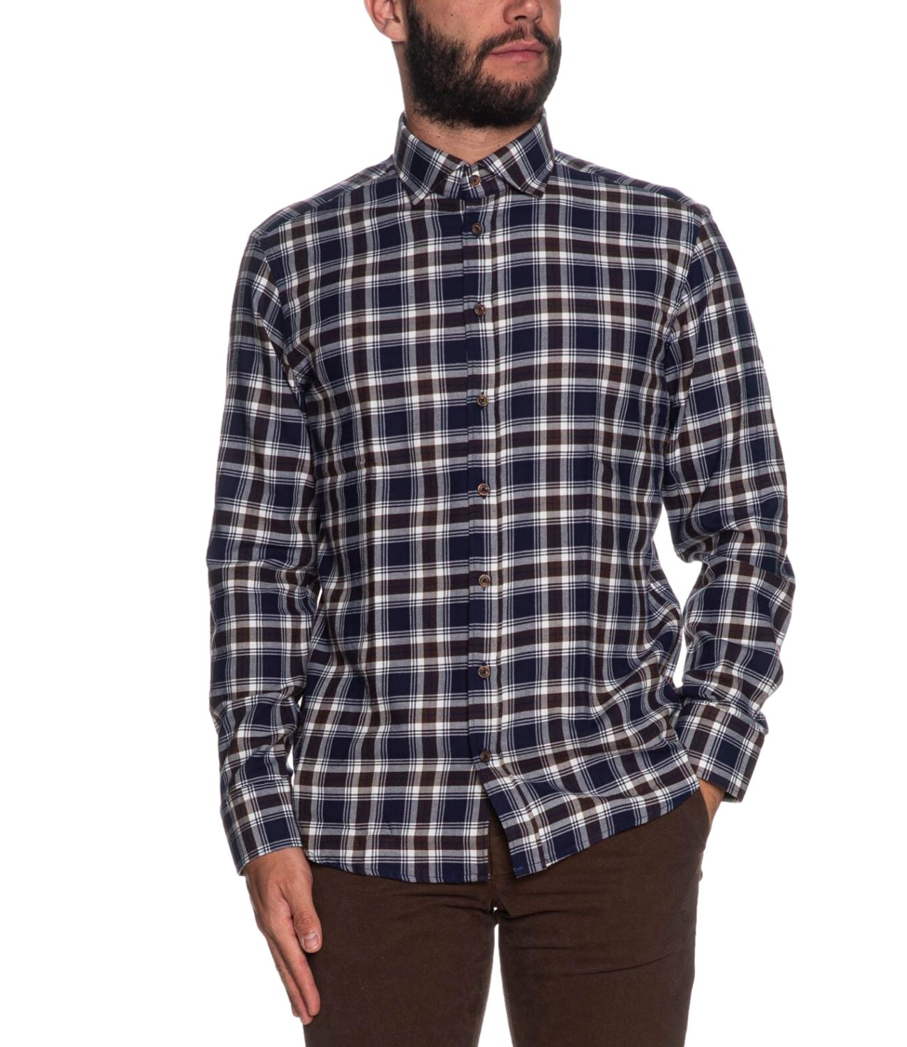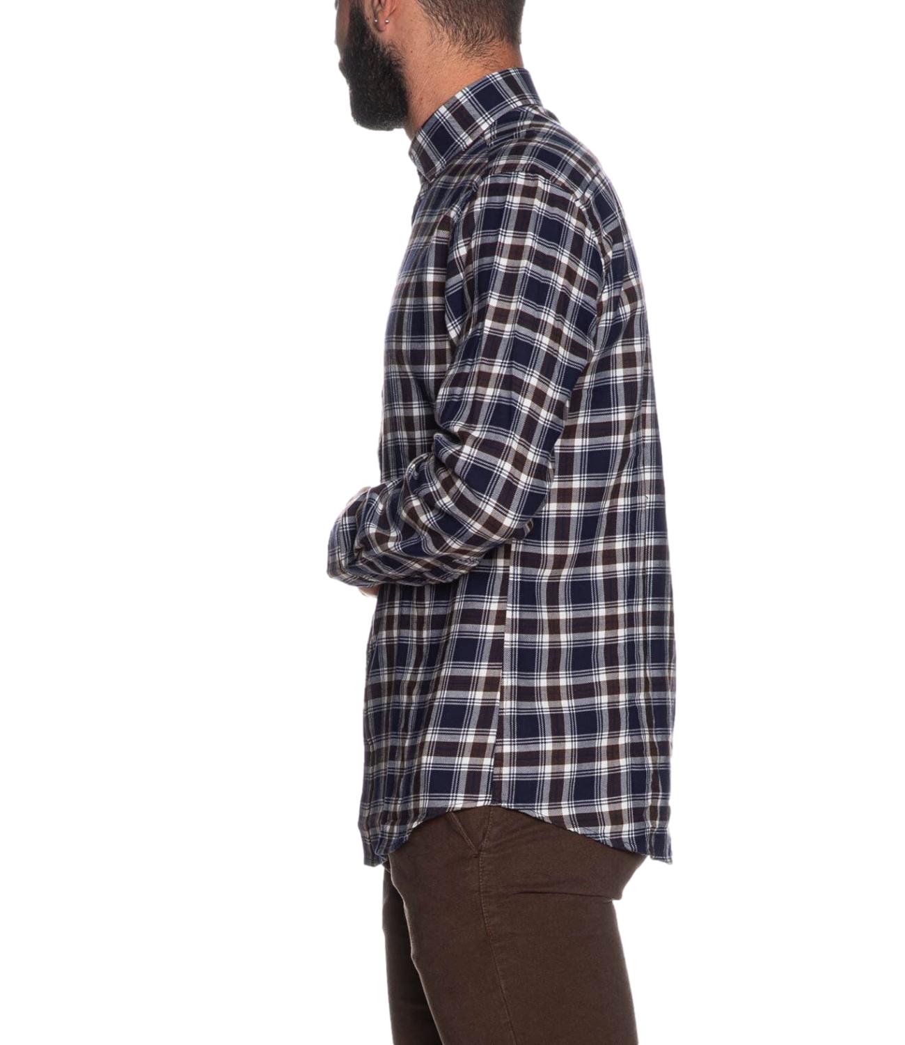Il modello è alto 182cm e indossa una taglia 40. La vestibilità è regolare. La camicia può essere indossata anche aperta con t-shirt bianca, pertanto anche una taglia maggiore è accettabile.