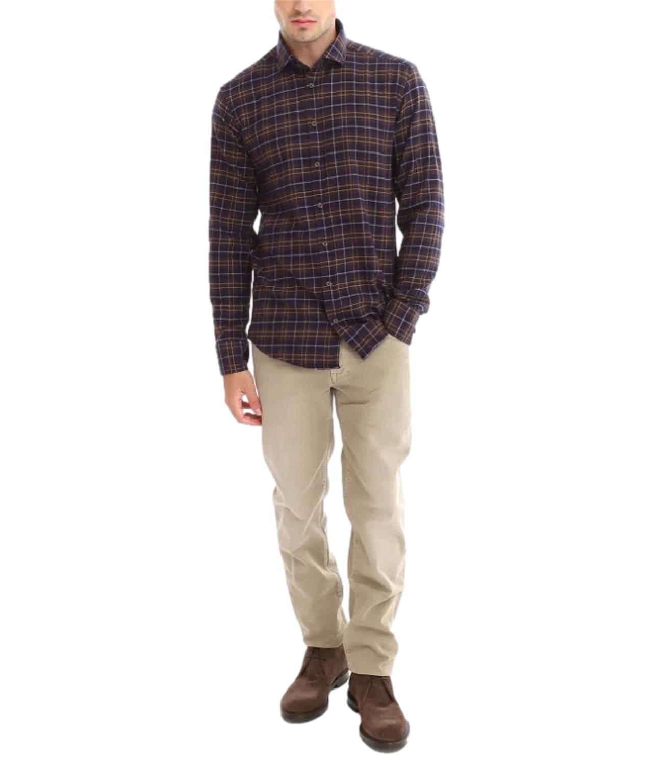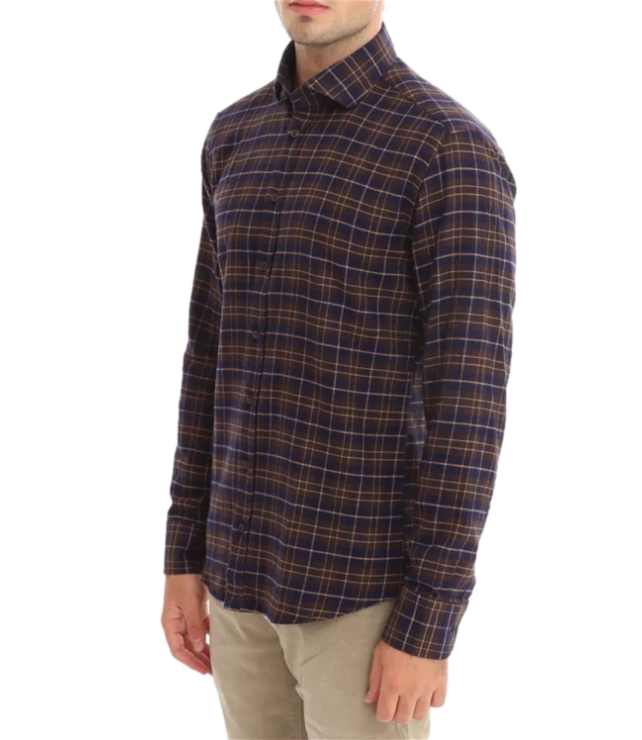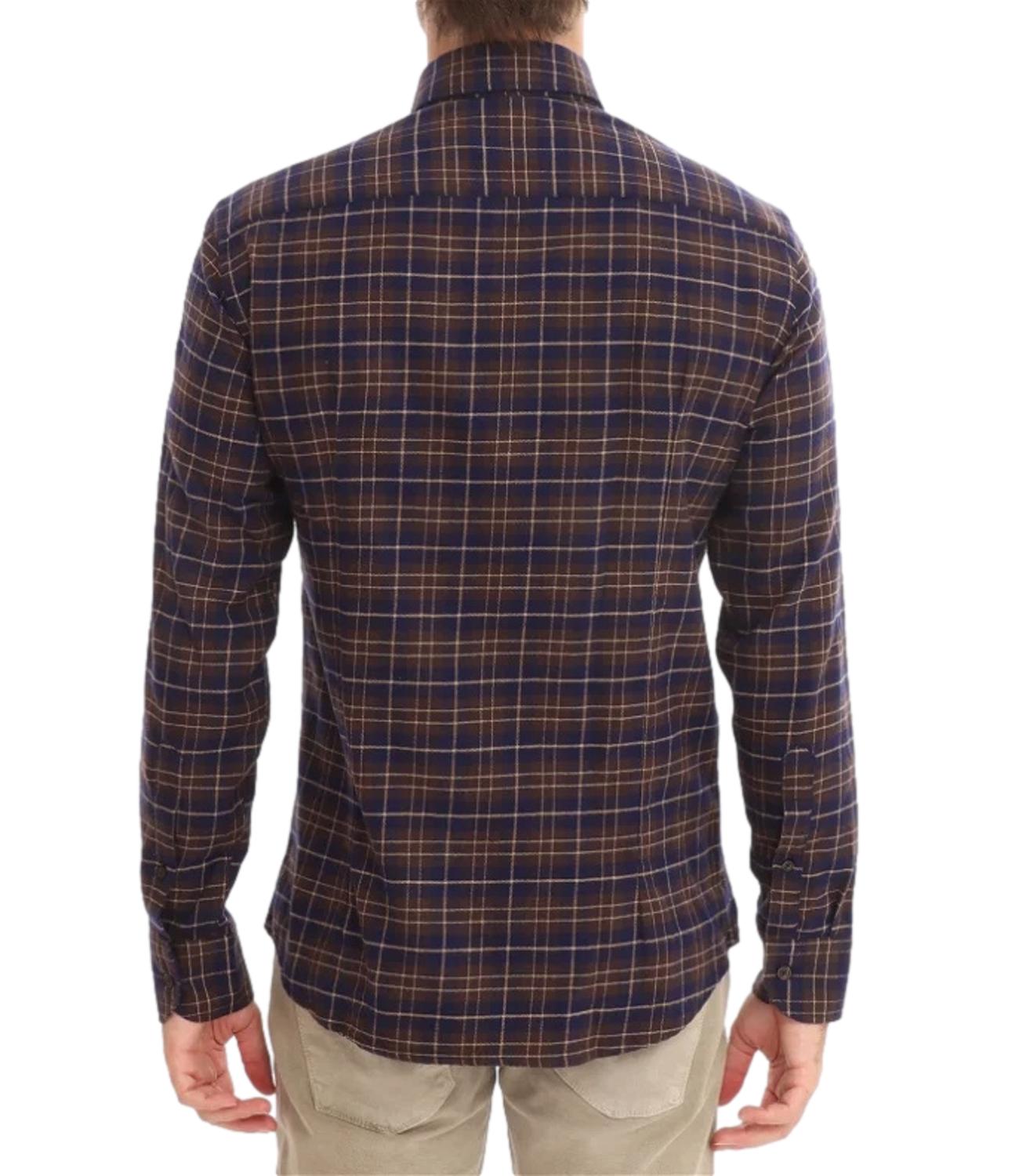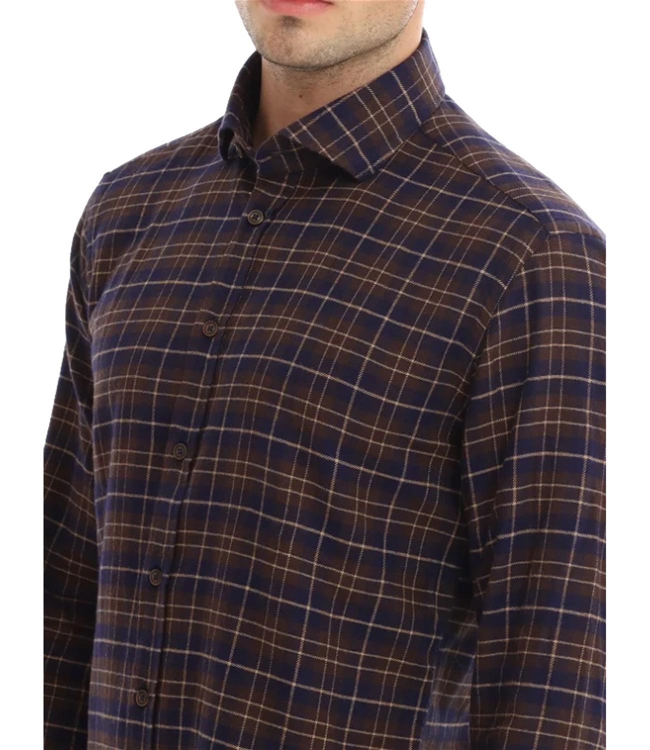 Camicia uomo in flanella a quadri blu e marrone