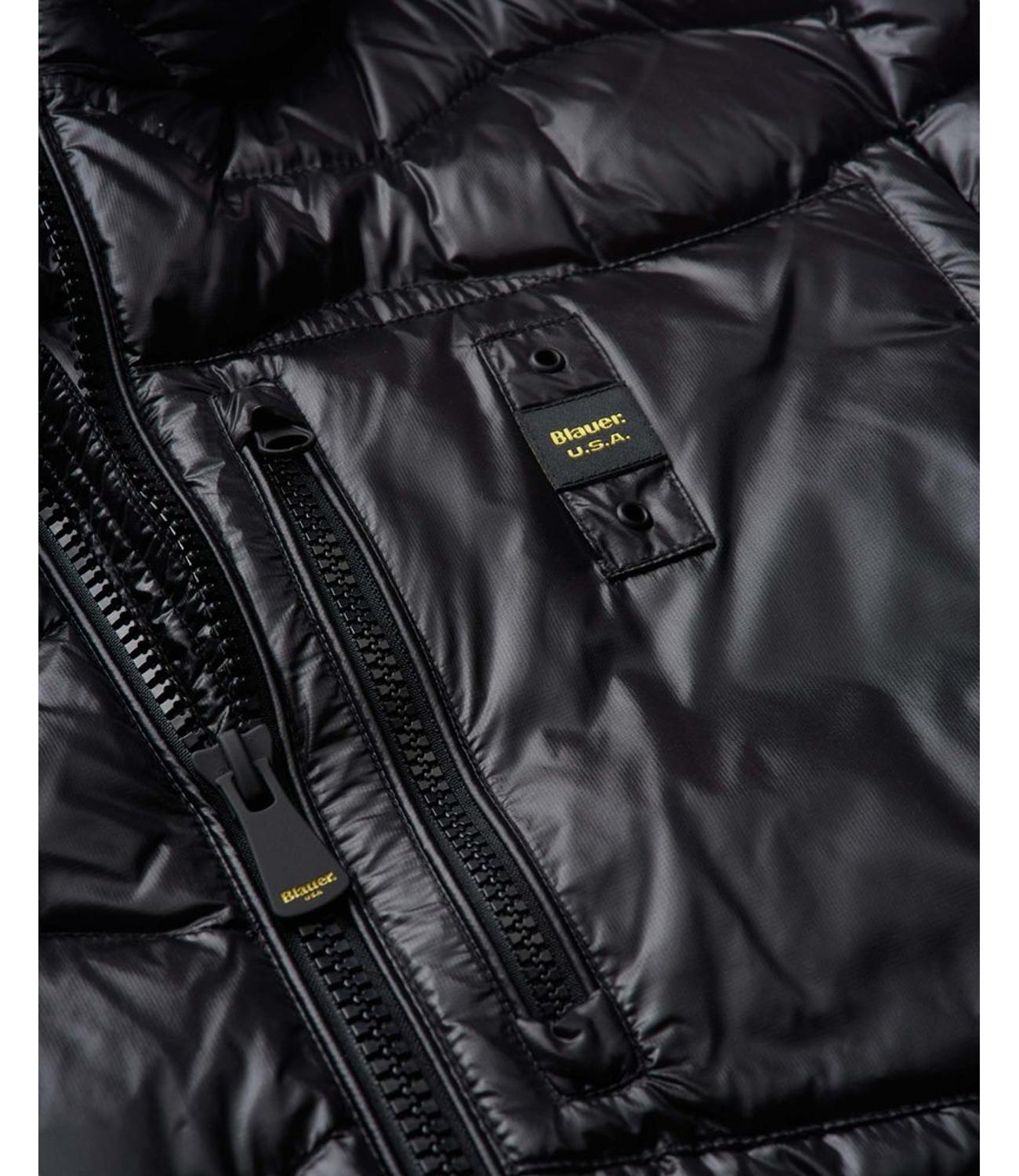 Piumino trapuntato ad onde orizzontali. Taschina applicata sul petto a sinistra per donare al capo iconico Blauer un tocco più funzionale. Imbottitura naturale in piuma, calda e non ingombrante; dedicato a chi vuole essere sempre alla moda in ogni occasione.