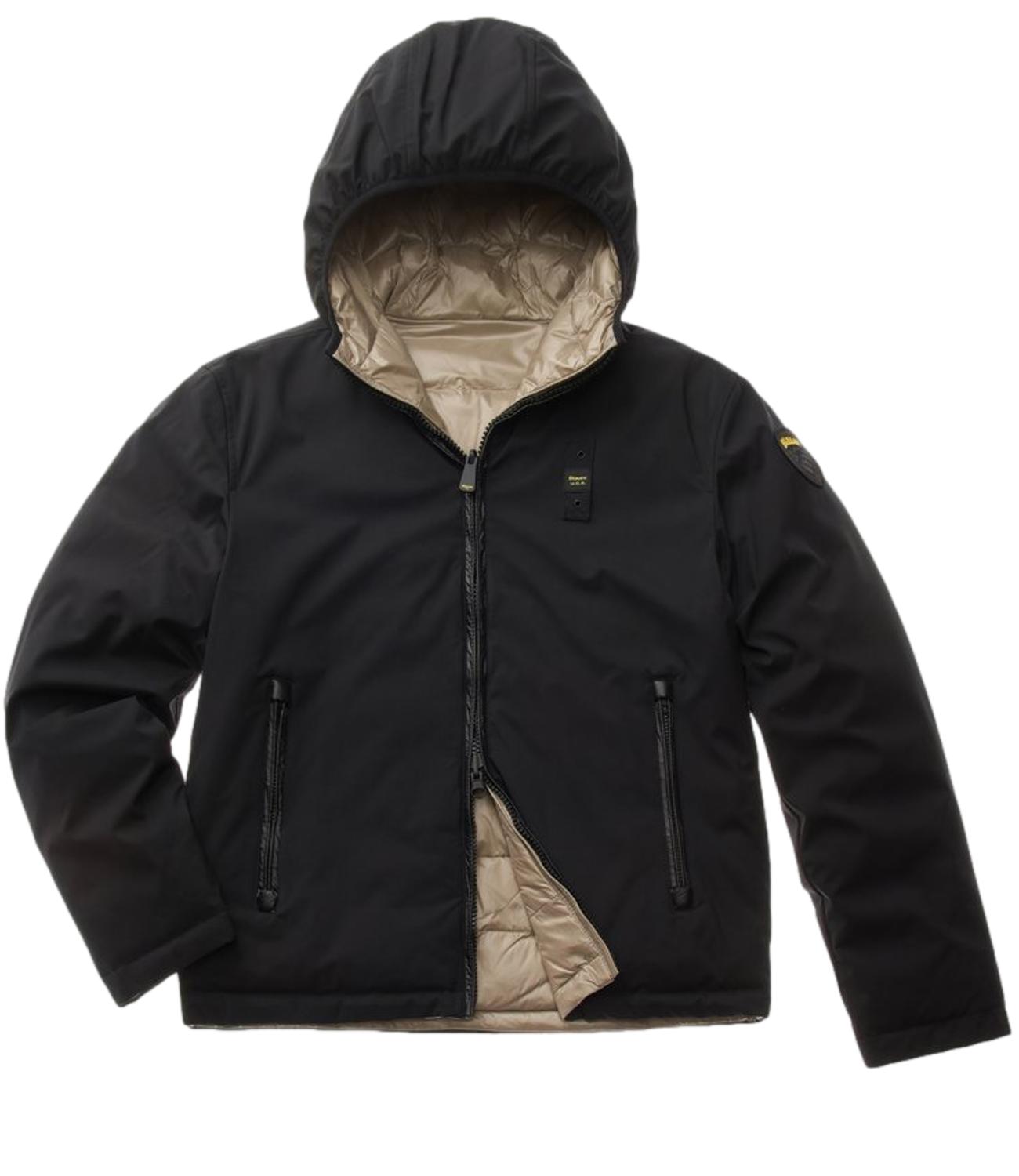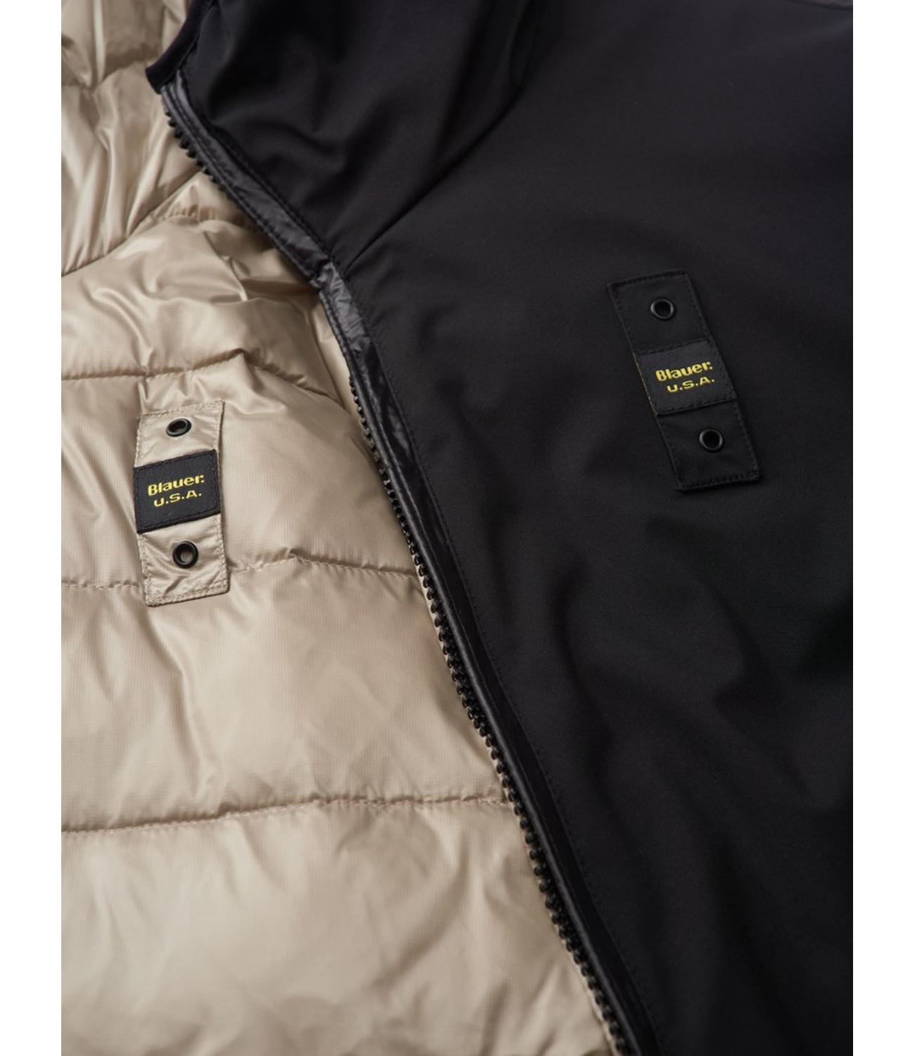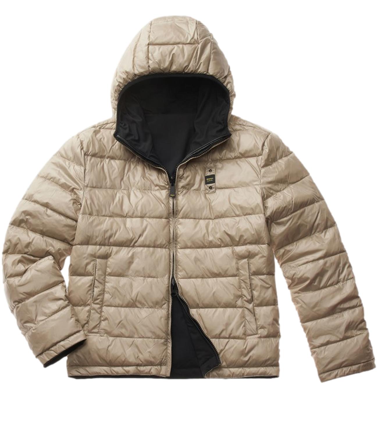 Piumino idrorepellente reversibile liscio da un lato e trapuntato a righe orizzontali dall'altro. Capo versatile da utilizzare in due versioni una più elegante e una più casual.