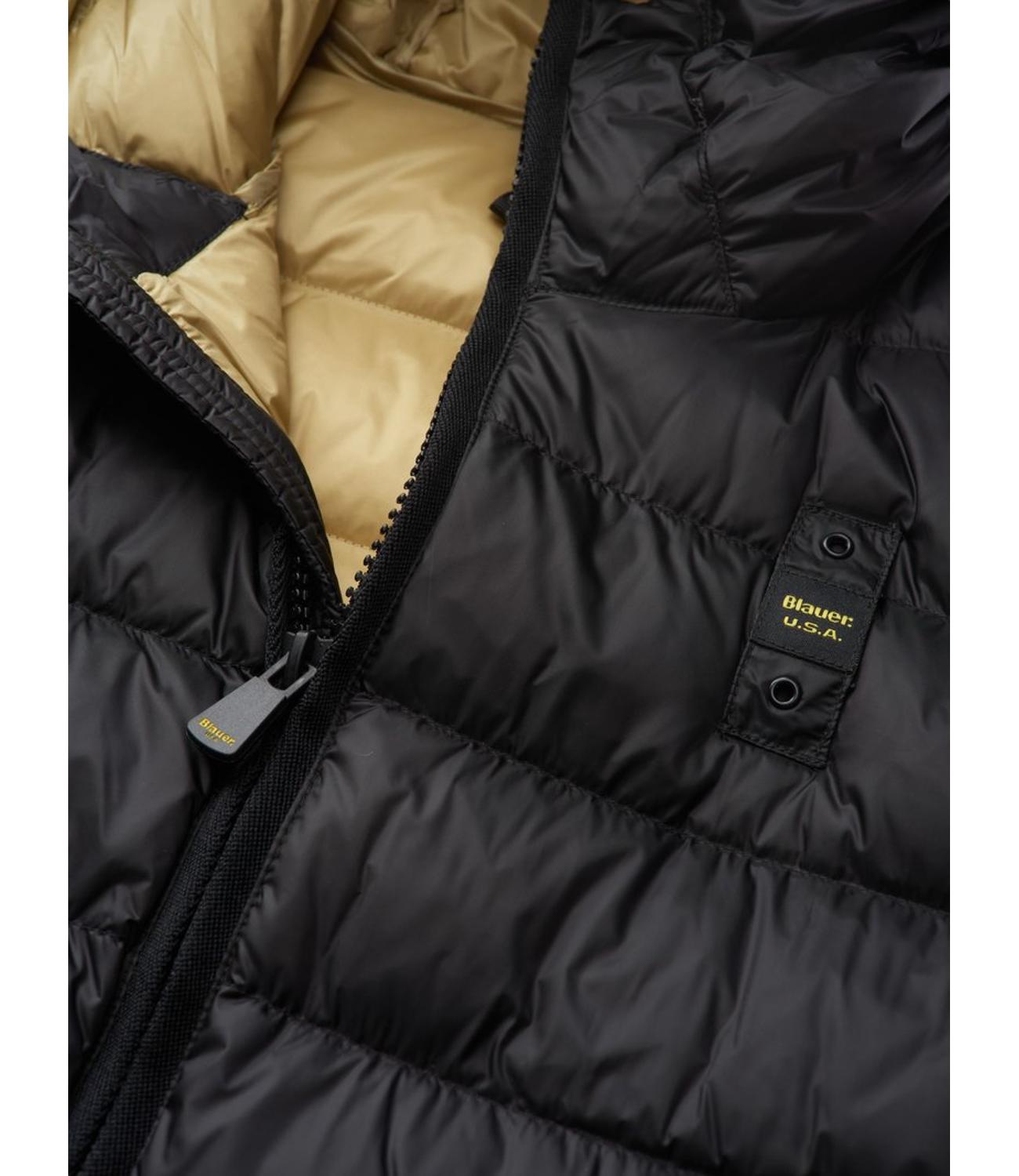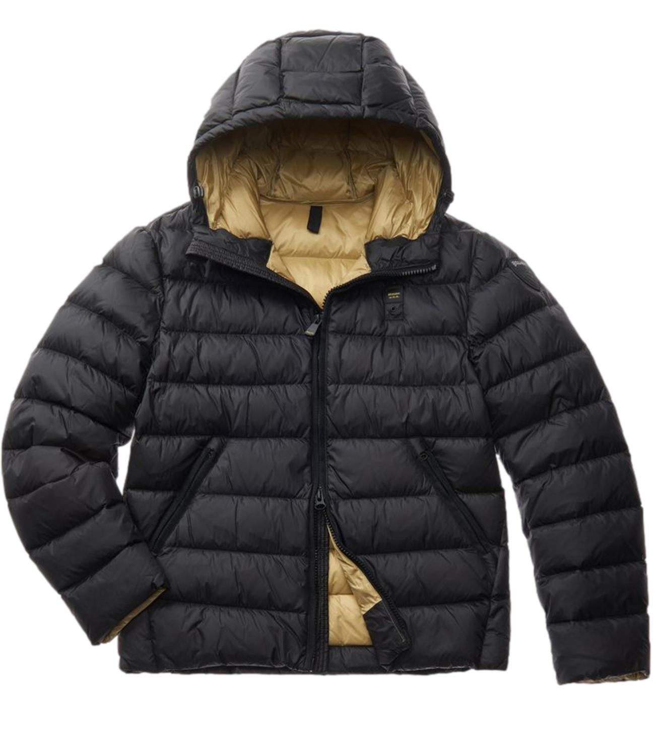 Piumino trapuntato a righe orizzontali. Capo iconico Blauer con imbottitura naturale in piuma, calda e non ingombrante; dedicato a chi vuole essere sempre alla moda in ogni occasione.