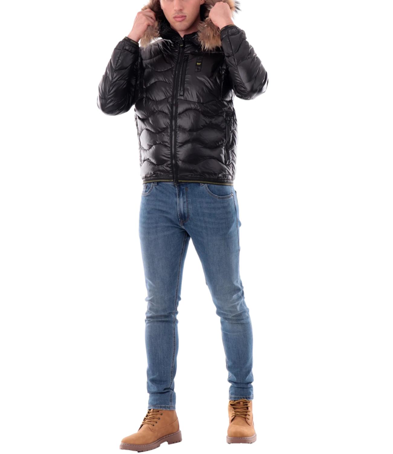 Piumino trapuntato ad onde orizzontali con pelliccia. Taschina applicata sul petto a sinistra per donare al capo iconico Blauer un tocco più funzionale. Imbottitura naturale in piuma, calda e non ingombrante; dedicato a chi vuole essere sempre alla moda in ogni occasione.