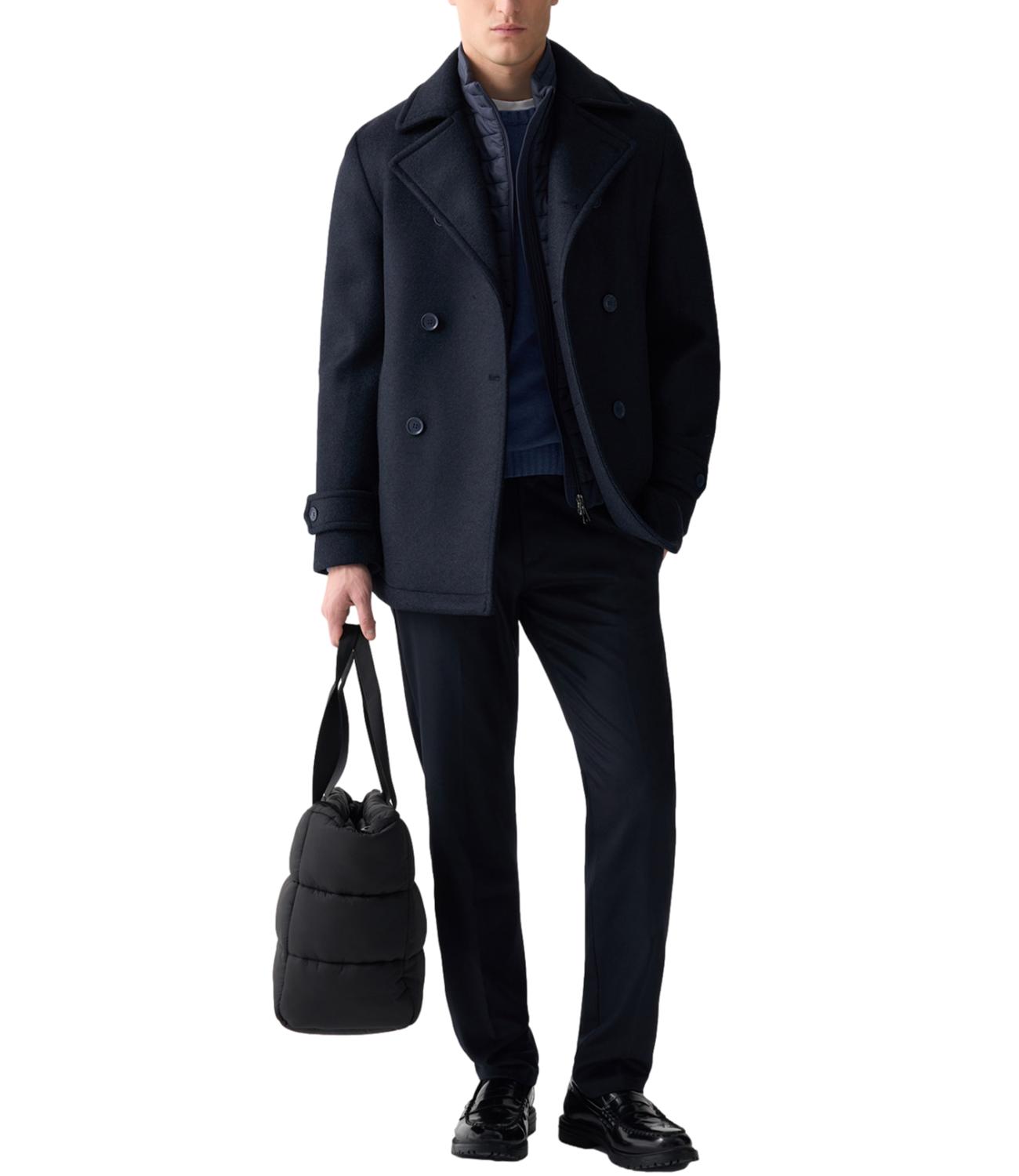 Colmar Doppiopetto blu uomo peacot con bottoni blu, cappotto modello corto in lana elasticizzata