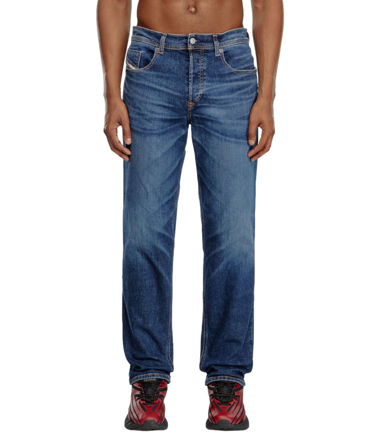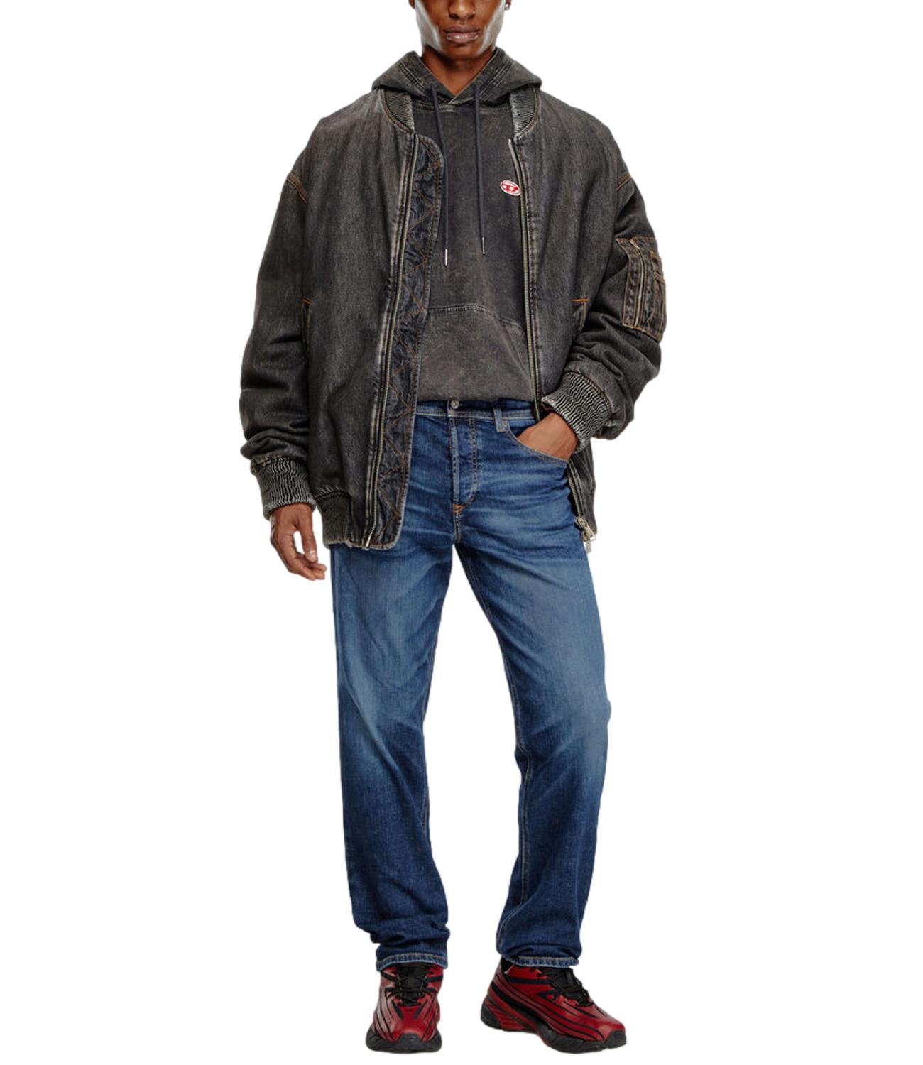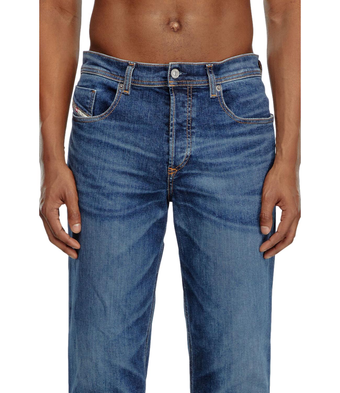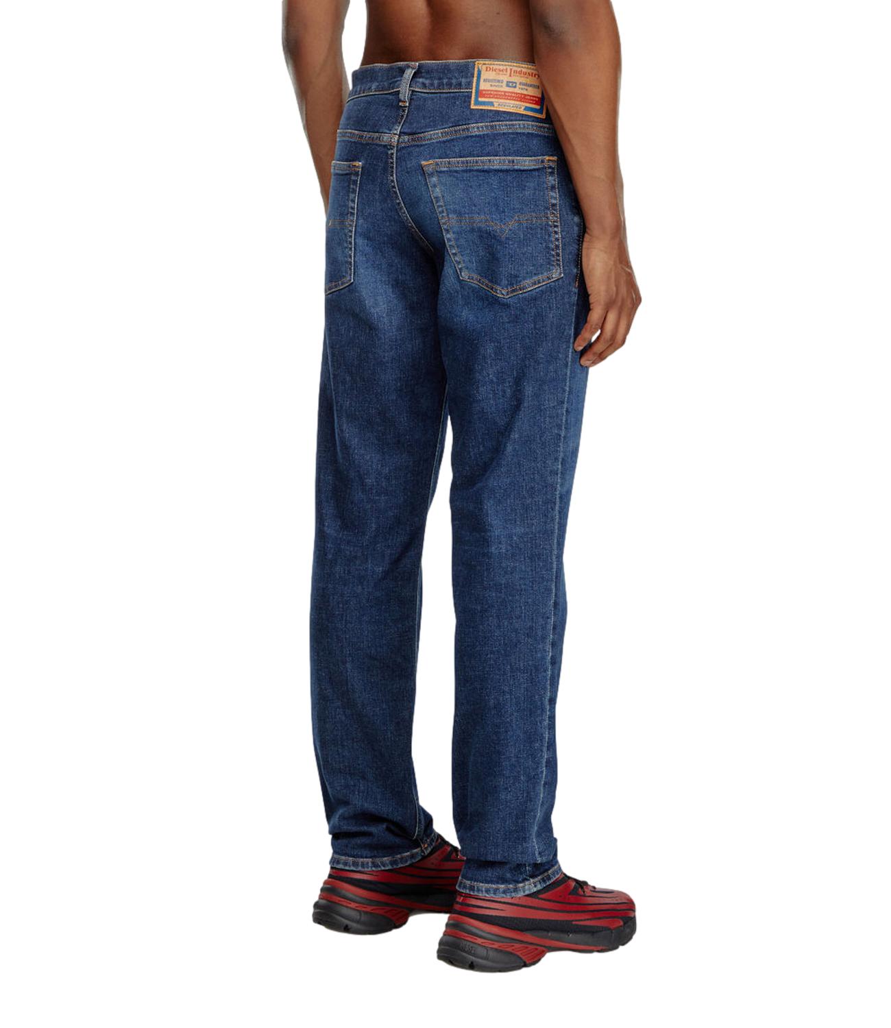 Realizzato in denim comfort con una percentuale di fibre stretch. Questo lavaggio DNA blu scuro è arricchito con whisker e sfumature che richiamano i trattamenti heritage di Diesel.