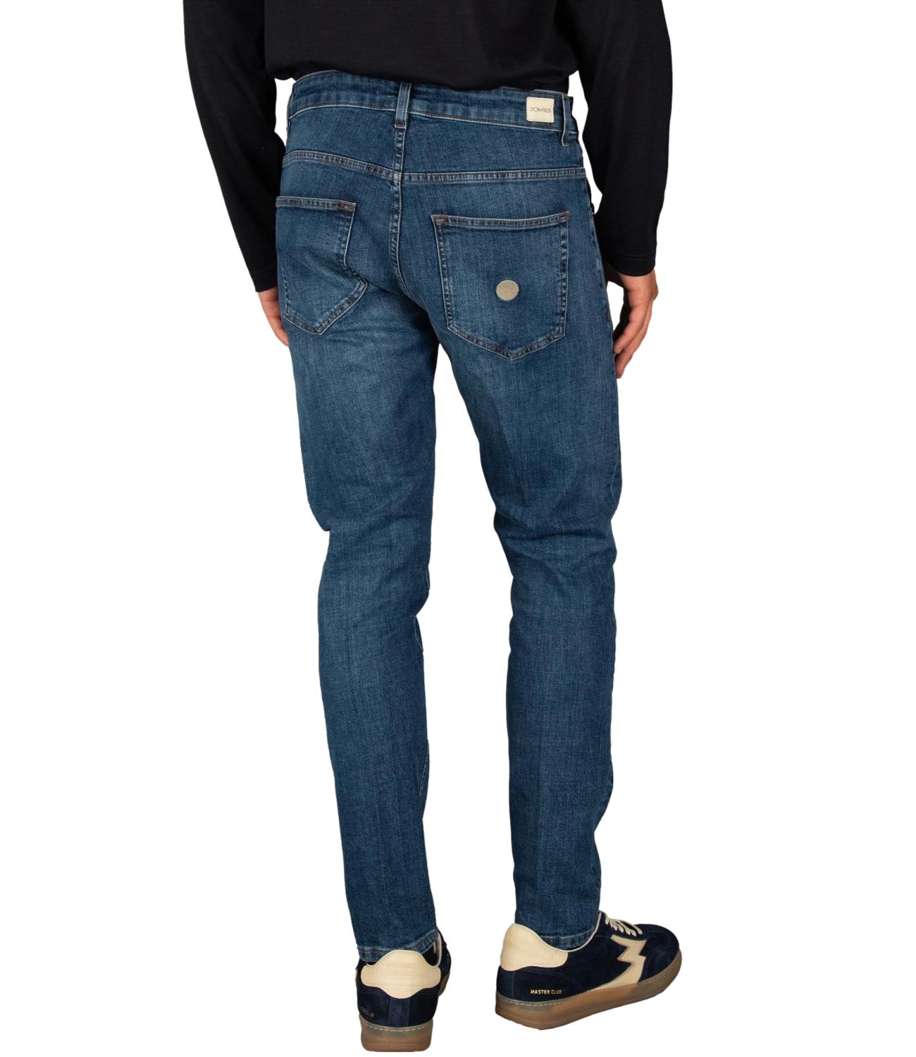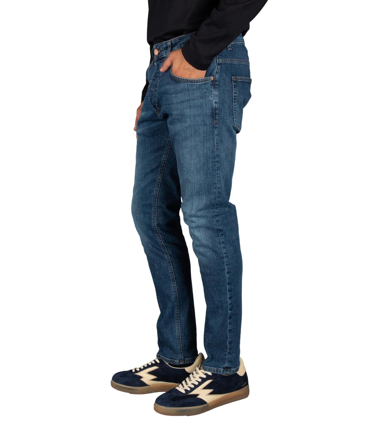 Jeans cinque tasche in denim elasticizzato con lavaggio medio.