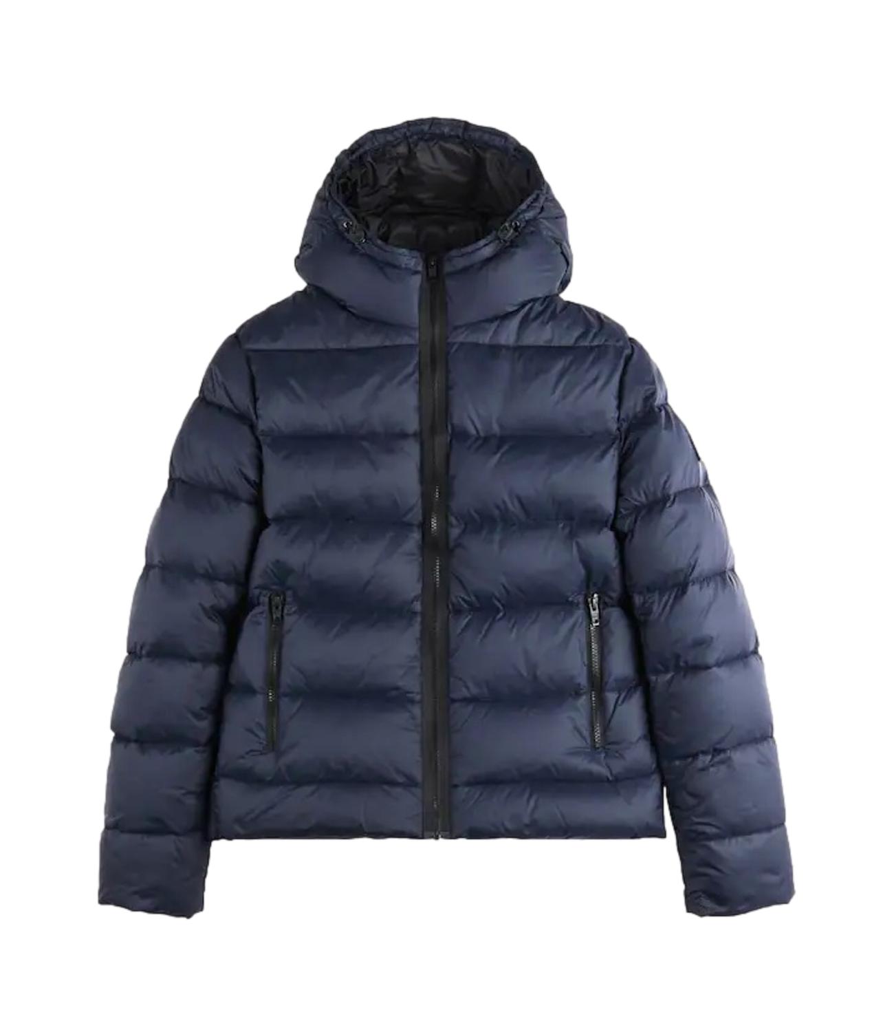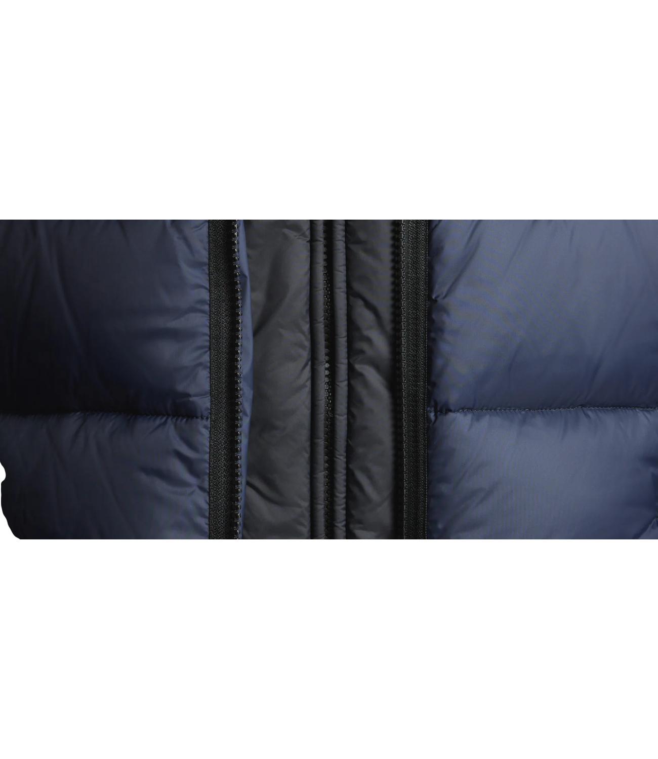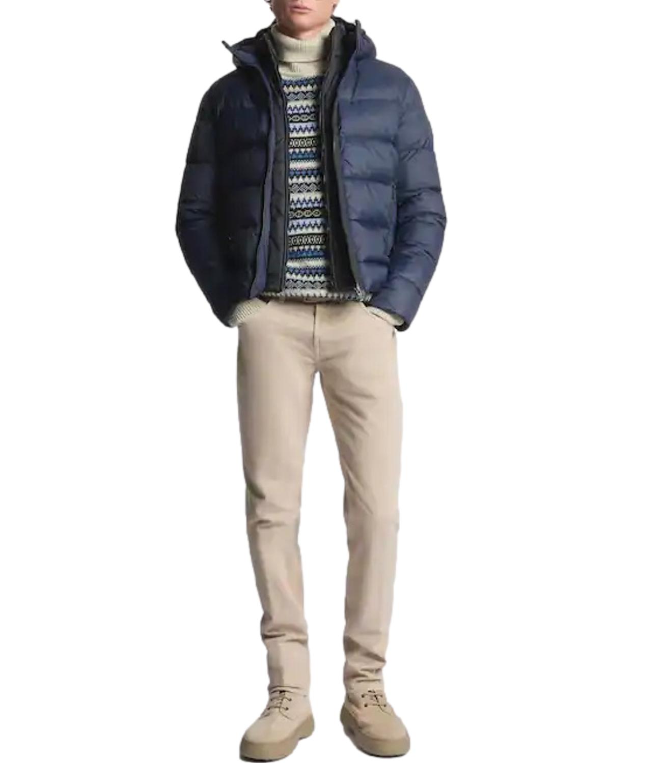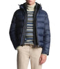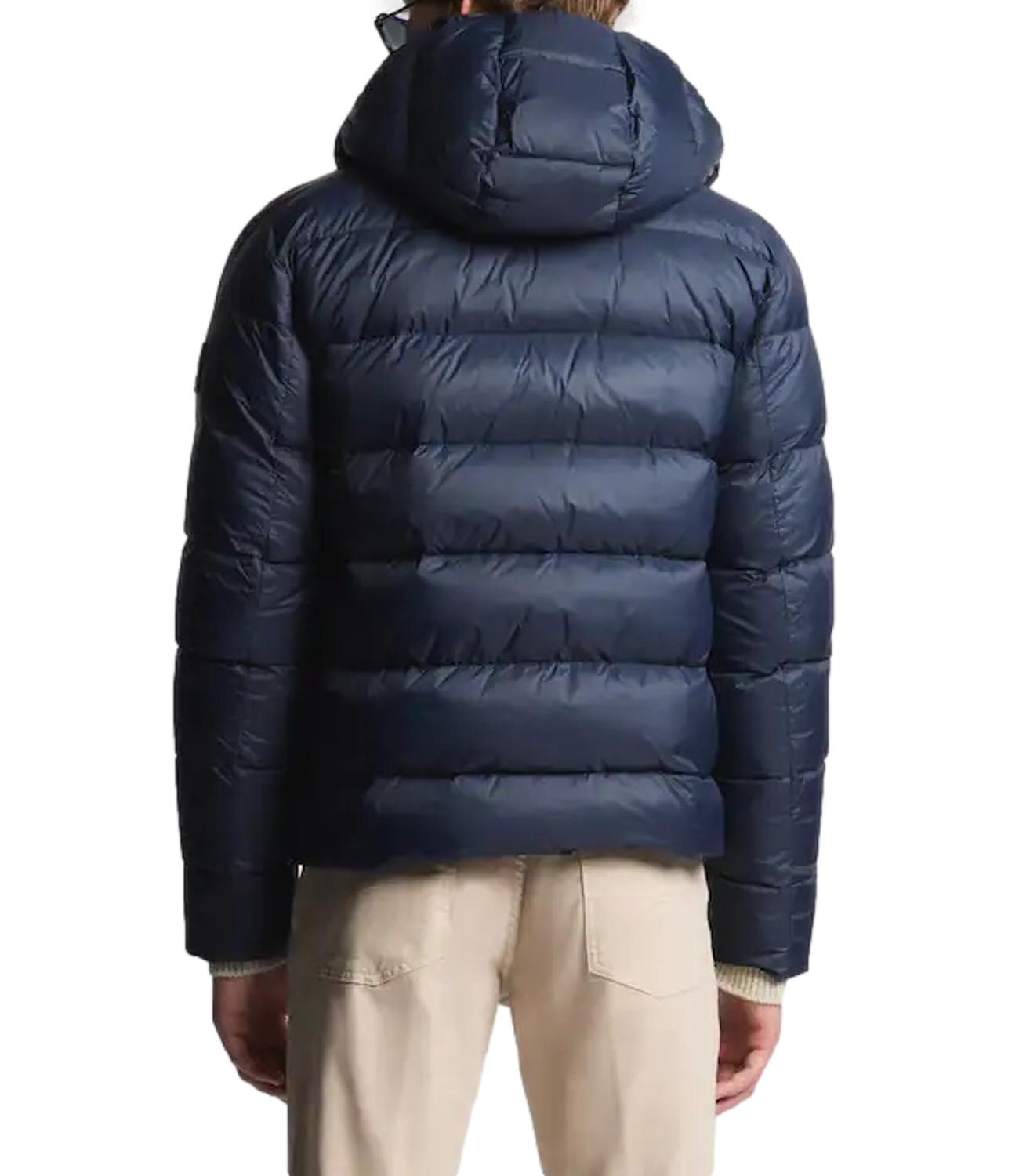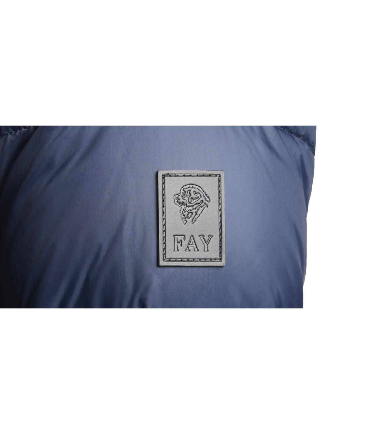 Fay Piumino blu corto Double Front in Popeline Calandrato, con fasce larghe orizzontali, giubbotto in piuma d'oca