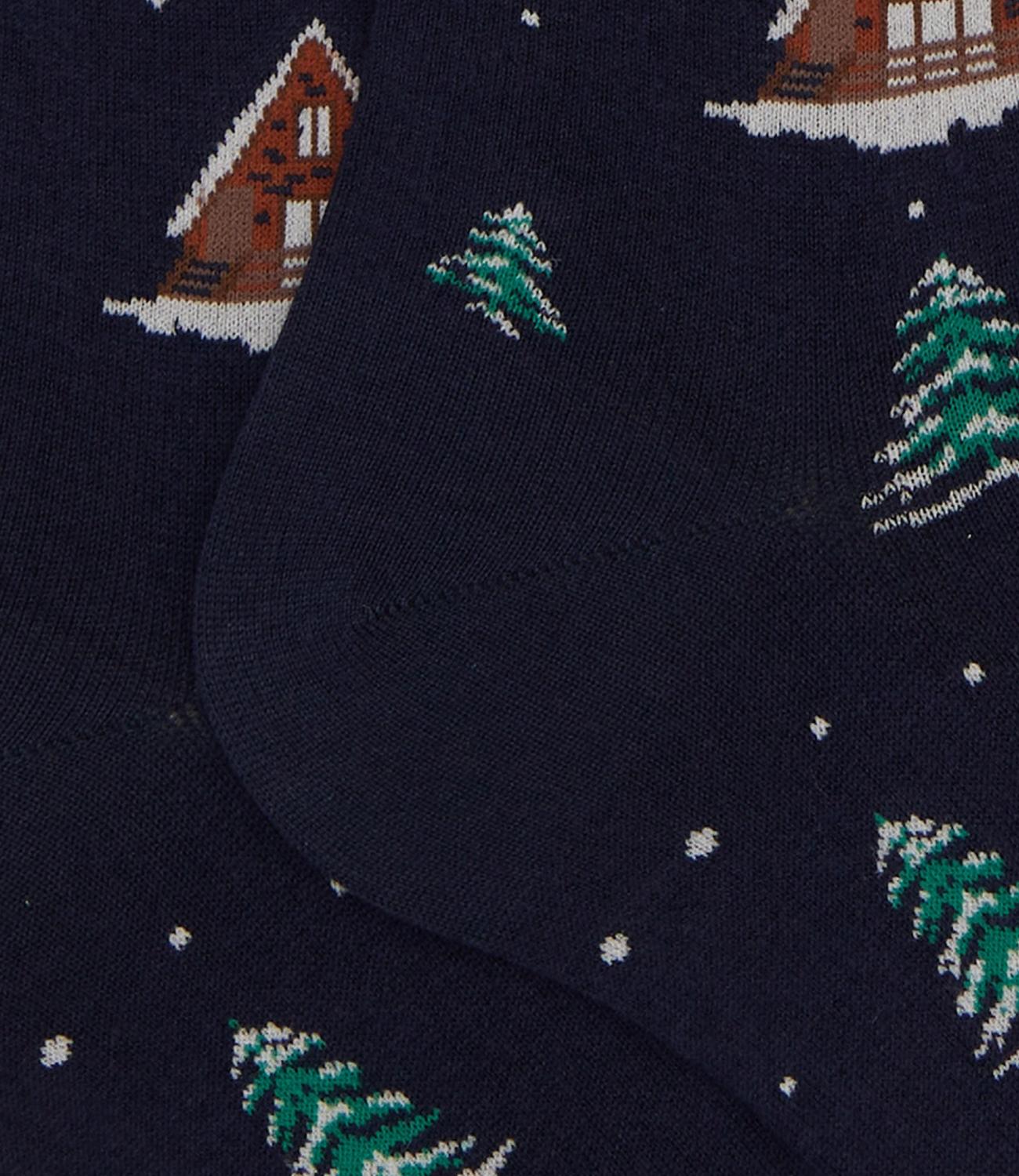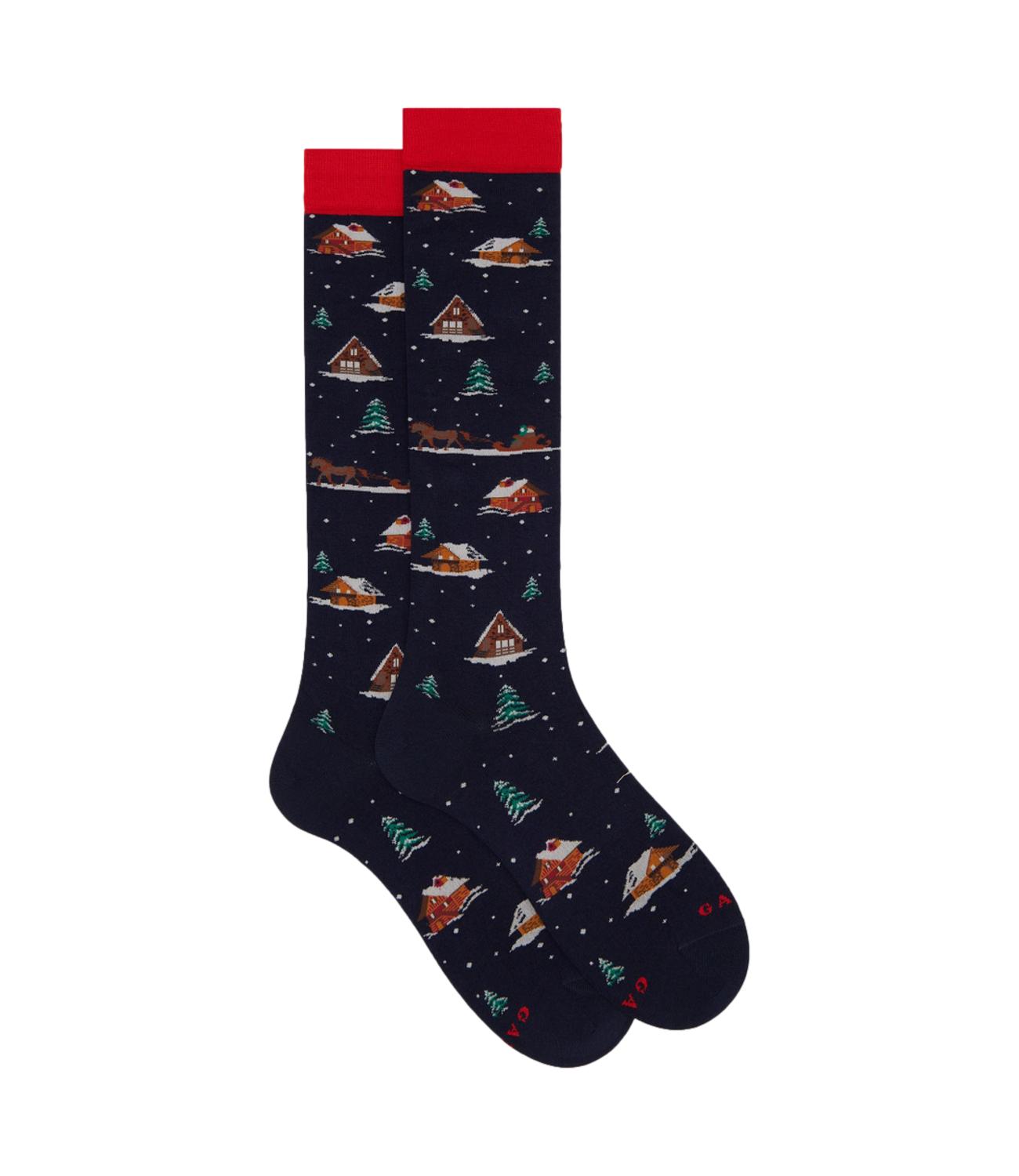 Gallo Calze lunghe da uomo in cotone fantasia natale su sofondo blu scuro