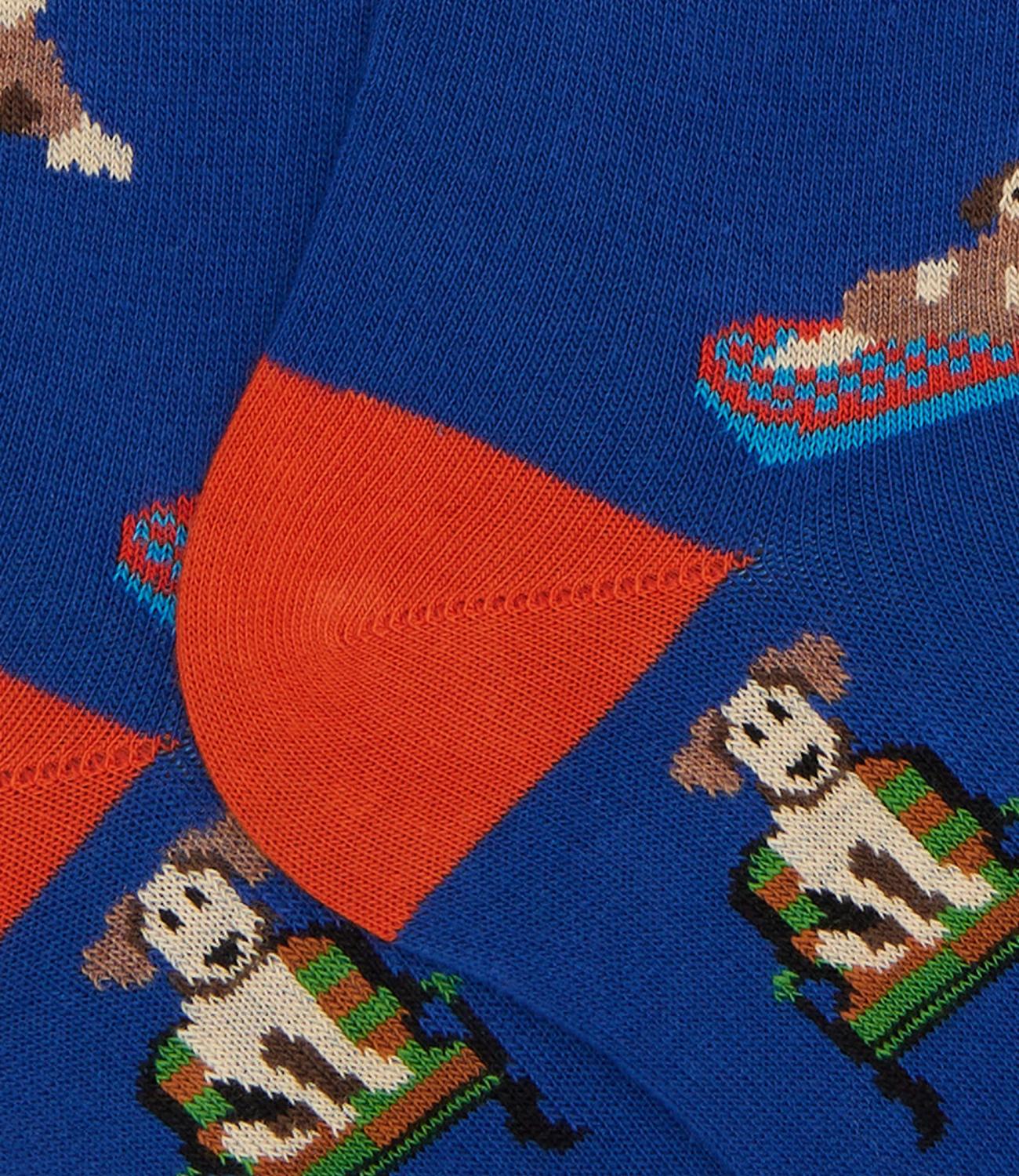 Gallo Calze lunghe da uomo in cotone fantasia cani reali su sfondo bluette, colore copiativo
