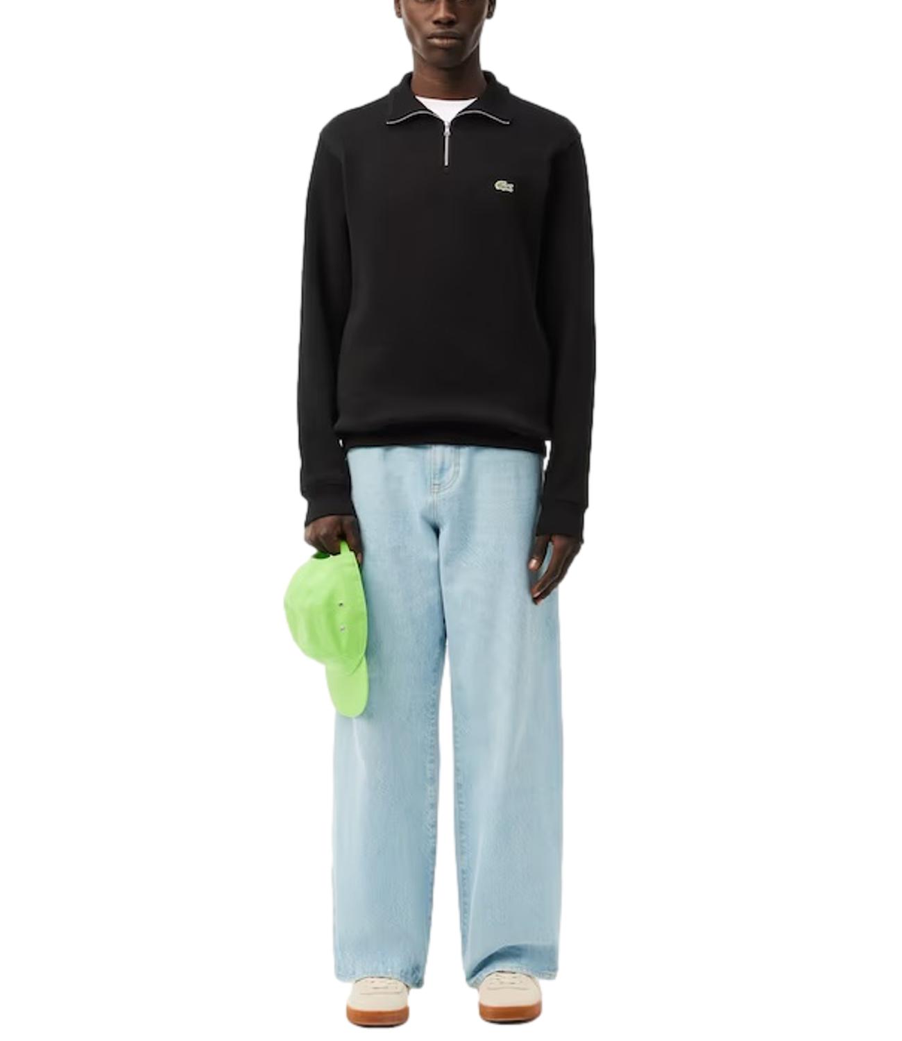 Dal 1933 Lacoste firma l'abbigliamento sportivo con uno stile unico. Questa felpa a collo alto incarna perfettamente lo spirito casual chic del brand: realizzata in morbido interlock di cotone a costine, unisce comfort e raffinatezza. Il taglio classico garantisce libertà di movimento, mentre il design minimalista è impreziosito da dettagli distintivi, come la zip sul collo alto e il motivo chevron jacquard all'interno. Completata dall'iconico coccodrillo ricamato sul petto, è un capo essenziale e versatile.