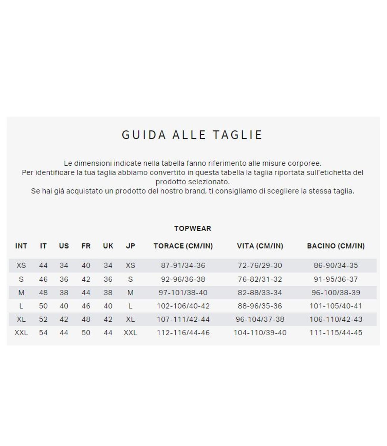 La chiusura frontale è dotata di zip a doppio cursore e patta antivento superiore con bottoni a pressione, impressa con il marchio in rilievo.