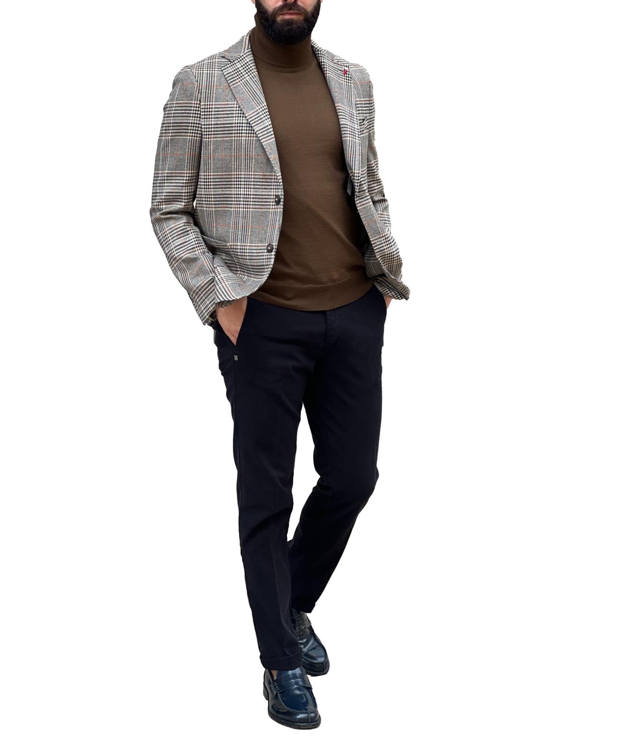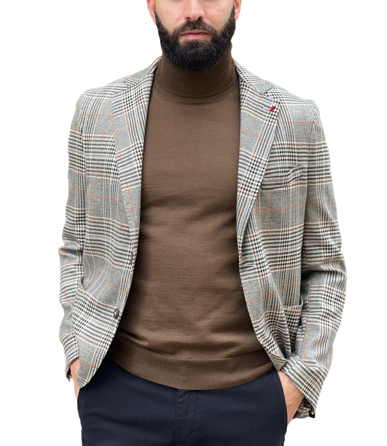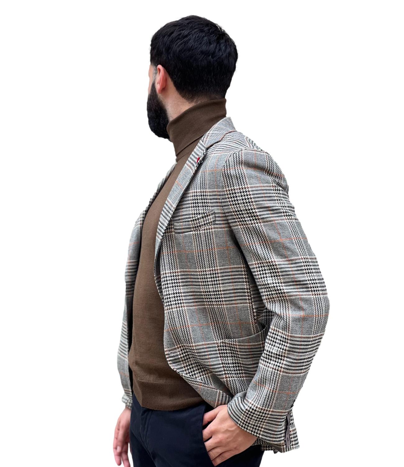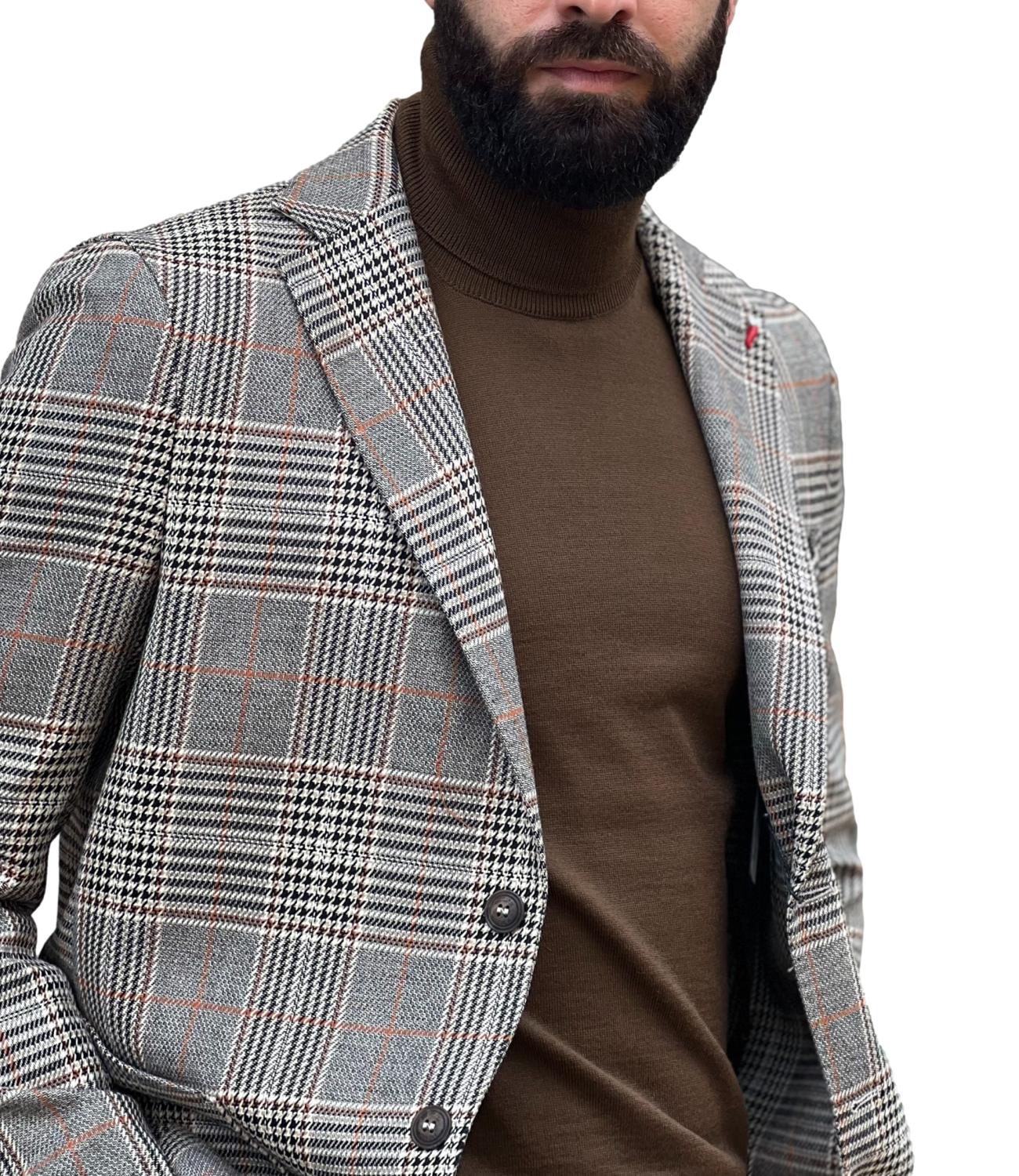 Giacca Mulish in principe di galles beige grigia e nera a quadri, con revers regolare, vestibilità slim fit