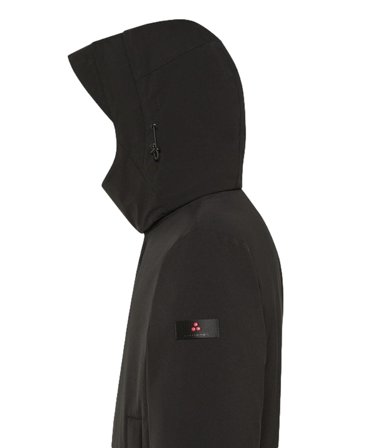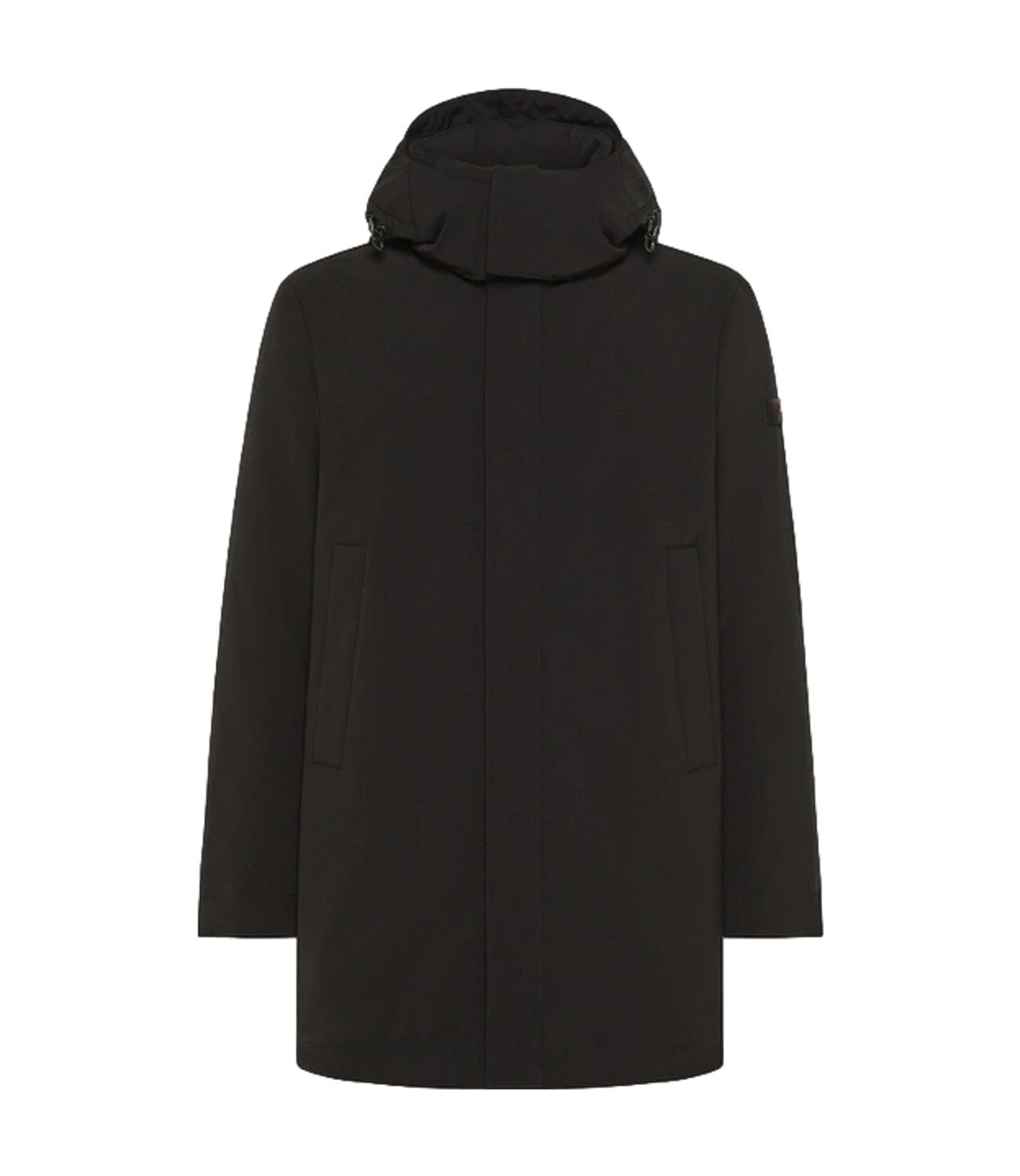 Trench tecnico in poliestere riciclato stretch con struttura twill, dal look pulito e opaco. Il leggero coating interno dona corpo al tessuto, garantendo morbidezza, proprietà antivento e idrorepellenti. L'imbottitura in piuma naturale certificata assicura calore e comfort, mentre la fodera interna check aggiunge un dettaglio distintivo. Design essenziale con collo in piedi, cappuccio staccabile, zip nascosta a doppio cursore e ampie tasche laterali. Vestibilità regular che reinterpreta con stile moderno un classico intramontabile, ideale per affrontare l'inverno con eleganza e funzionalità.