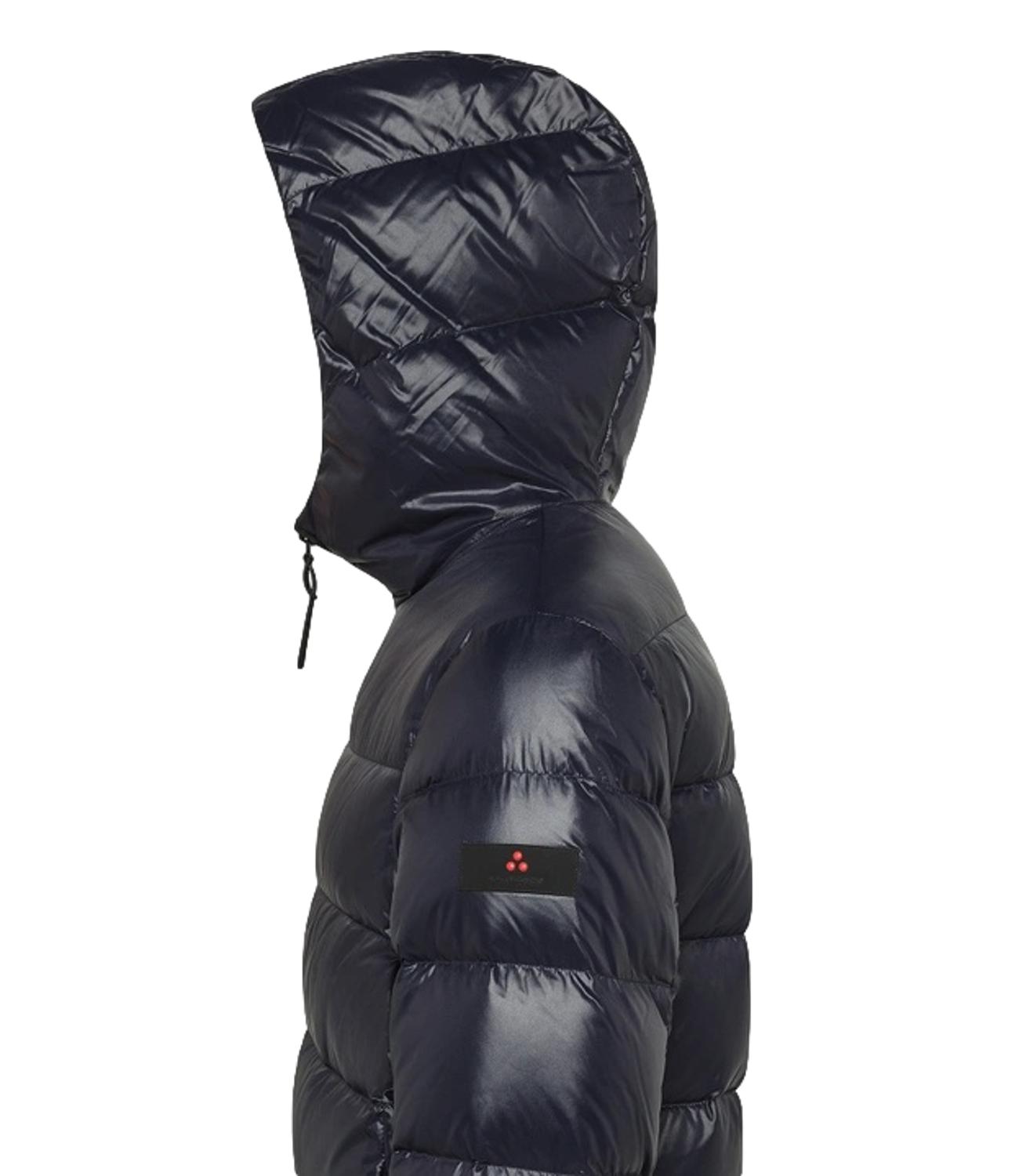 Piumino corto in nylon ultra leggero e lucido, dalla mano morbida e fluida. La trapunta orizzontale regolare dona un look pulito e grafico, esaltando la linea essenziale del capo. Imbottito in piuma naturale certificata, offre calore e comfort durante la stagione fredda. Cappuccio fisso regolabile, zip a doppio cursore e dettagli neri completano un design versatile e funzionale. Parte della linea Color, è wind resistant e water repellent, ideale per un look urbano dal carattere creativo ed easy.