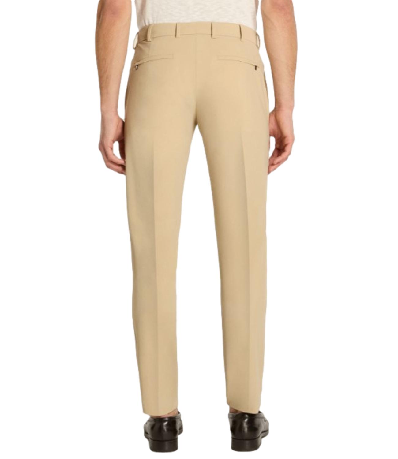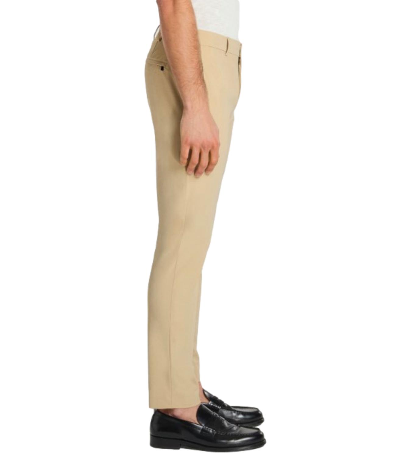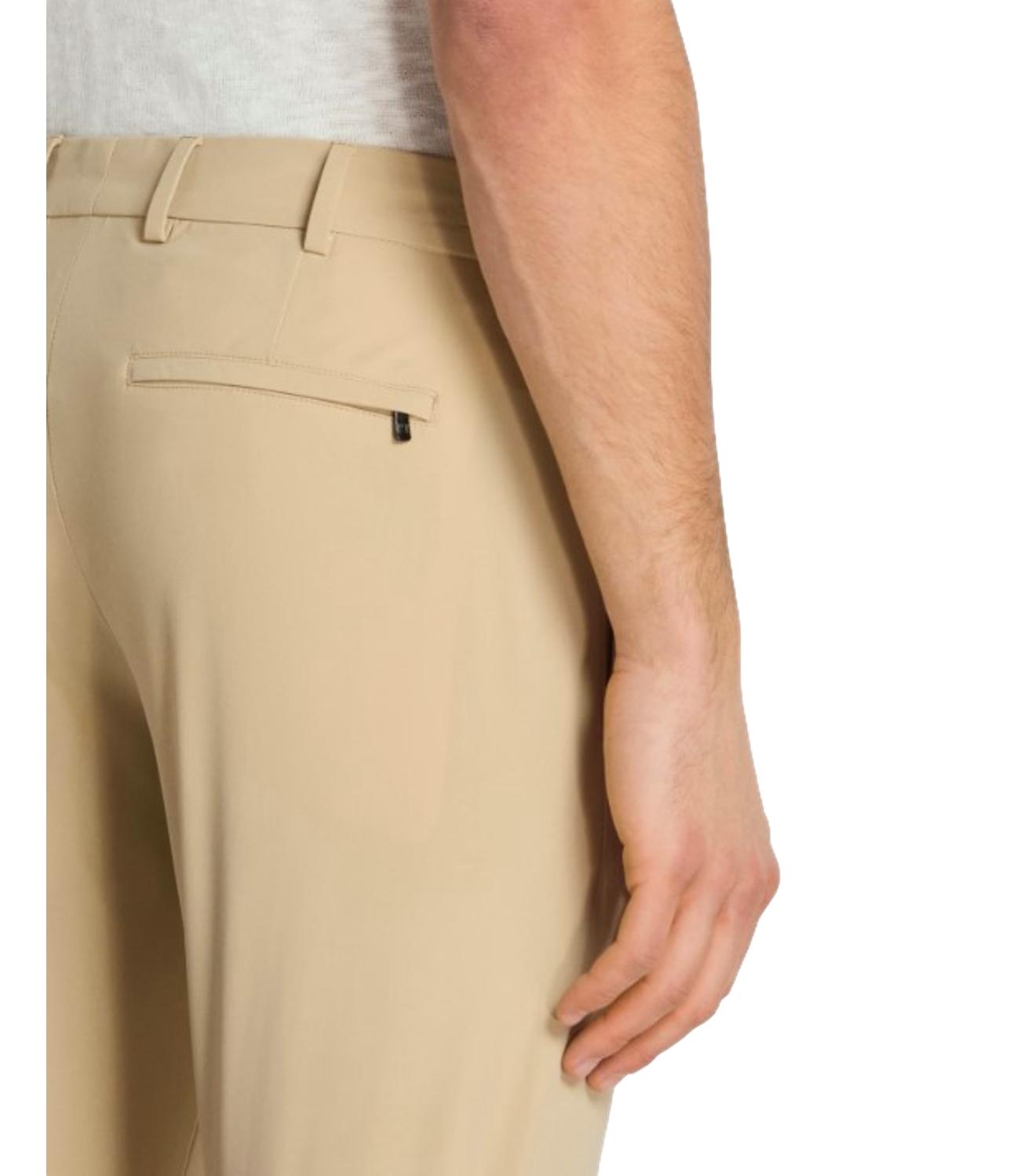 Pantaloni in tessuto kinetic stretch organico, un materiale traspirante, resistente, incredibilmente elastico e confortevole, perfetto per la stagione calda.Bacino pulito, tasche con zip sul retro, lunghezza alla caviglia e linea super slim per un modello sartoriale dai dettagli ricercati. In variante beige caldo da abbinare a giacca e T-shirt a contrasto.