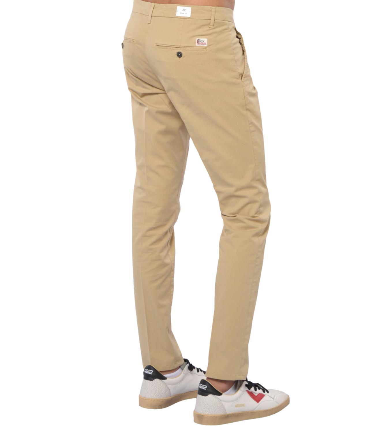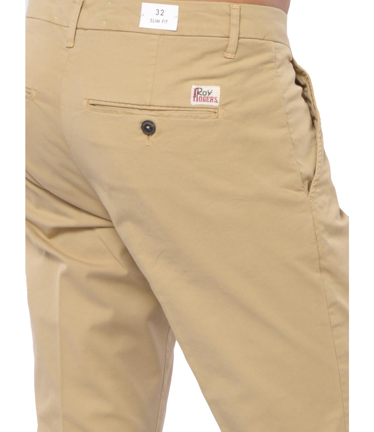 Pantalone in gabardina tinta unita. Vita media con passanti. Due tasche sul fronte e due tasche a filetto sul retro con bottone logato. Chiusura con bottone logato e zip. Label Roy Roger's applicata sul retro. Slim fit. COMPOSIZIONE: 97% COTONE 3%