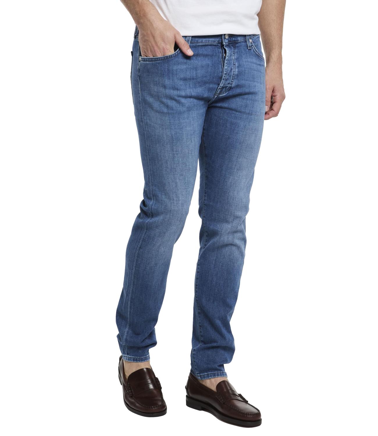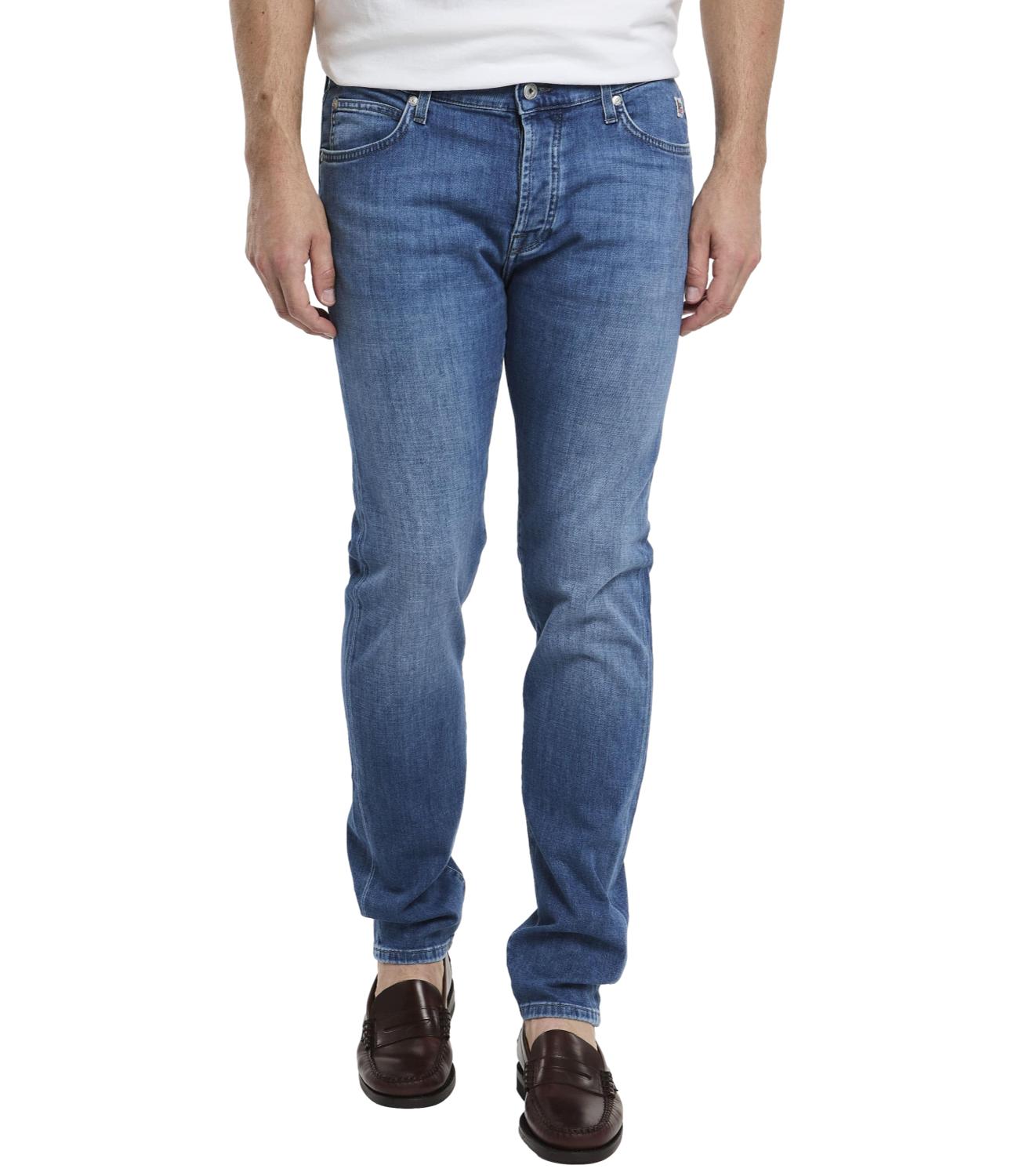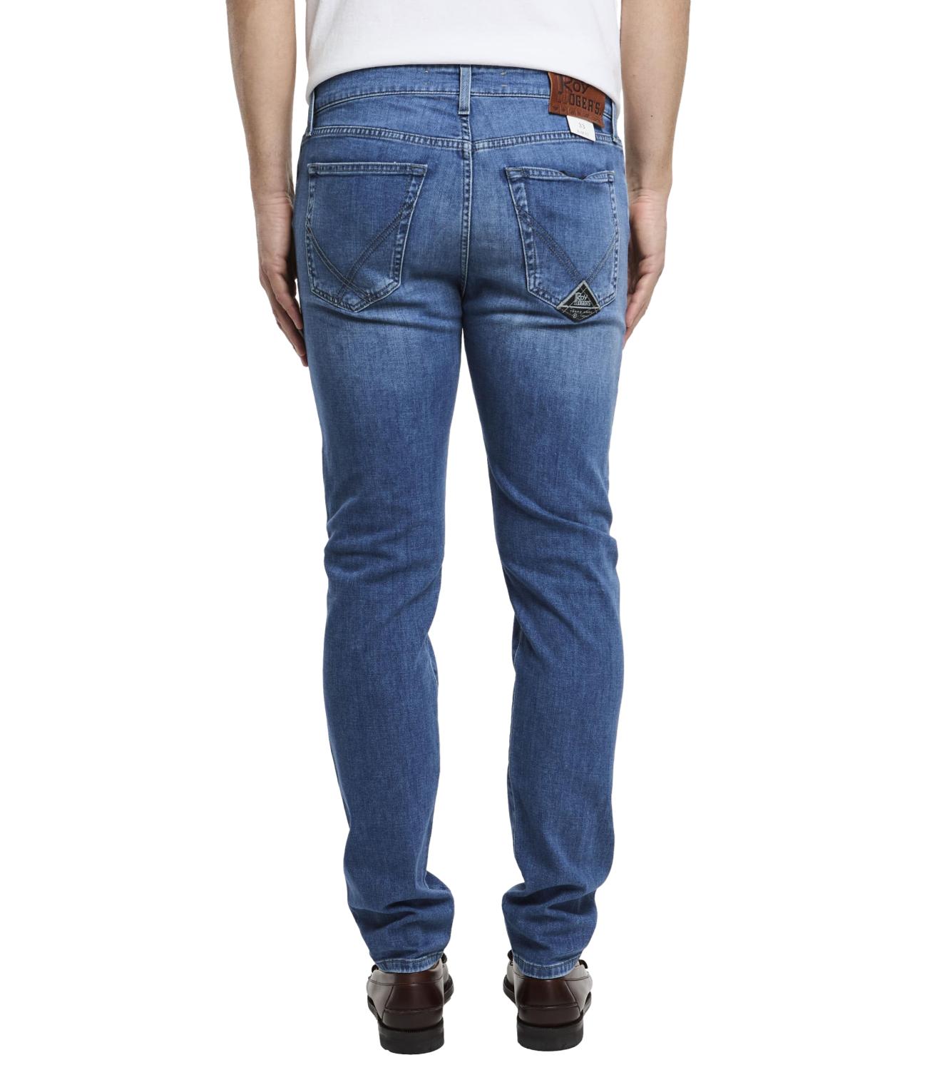 Jeans in denim con lavaggio chiaro. Vita media con passanti e salpa applicata sul retro. Chiusura con bottone logato e zip. Due tasche sul fronte e due tasche sul retro con label Roy Roger's applicata. Slim fit.