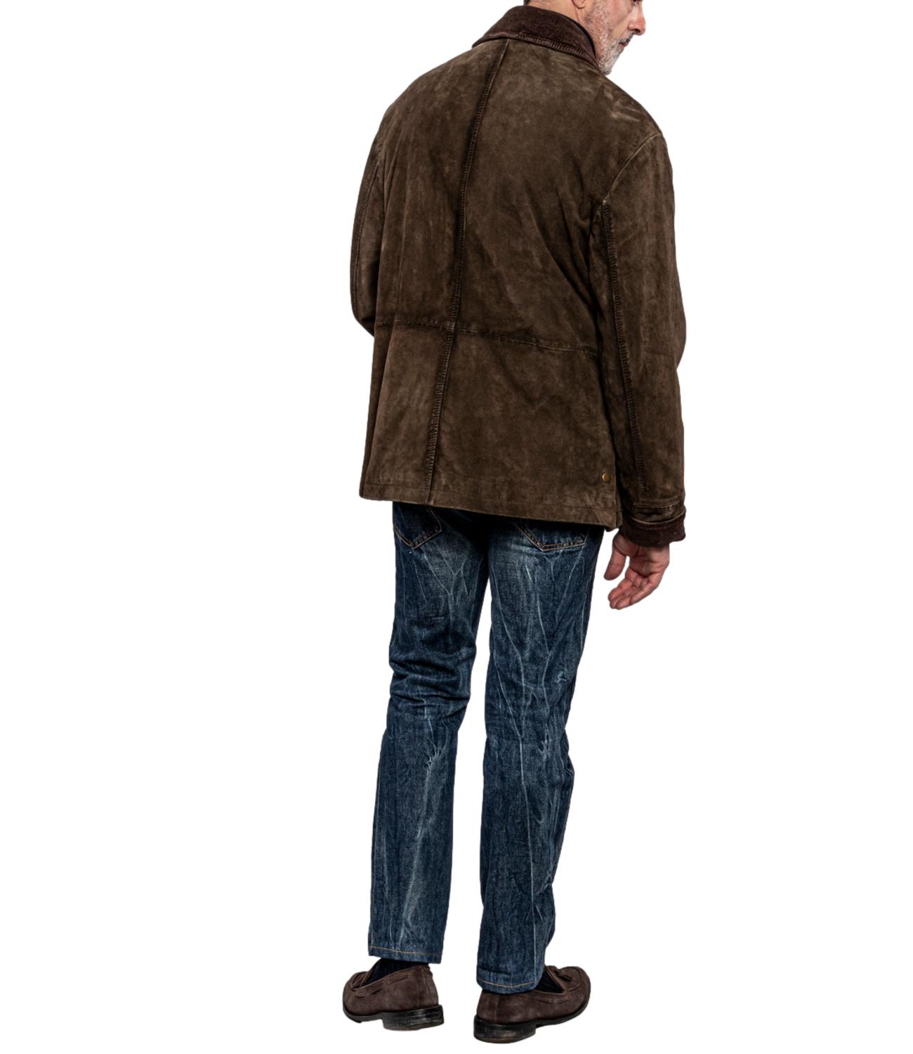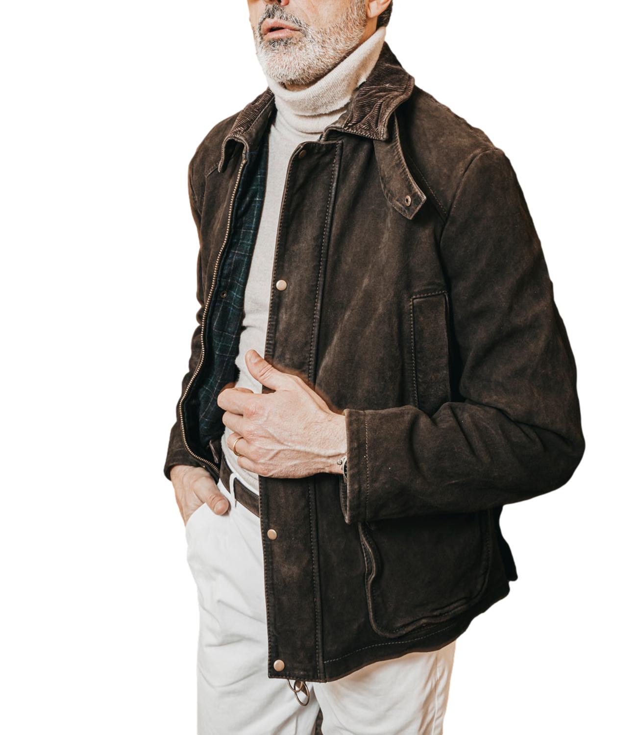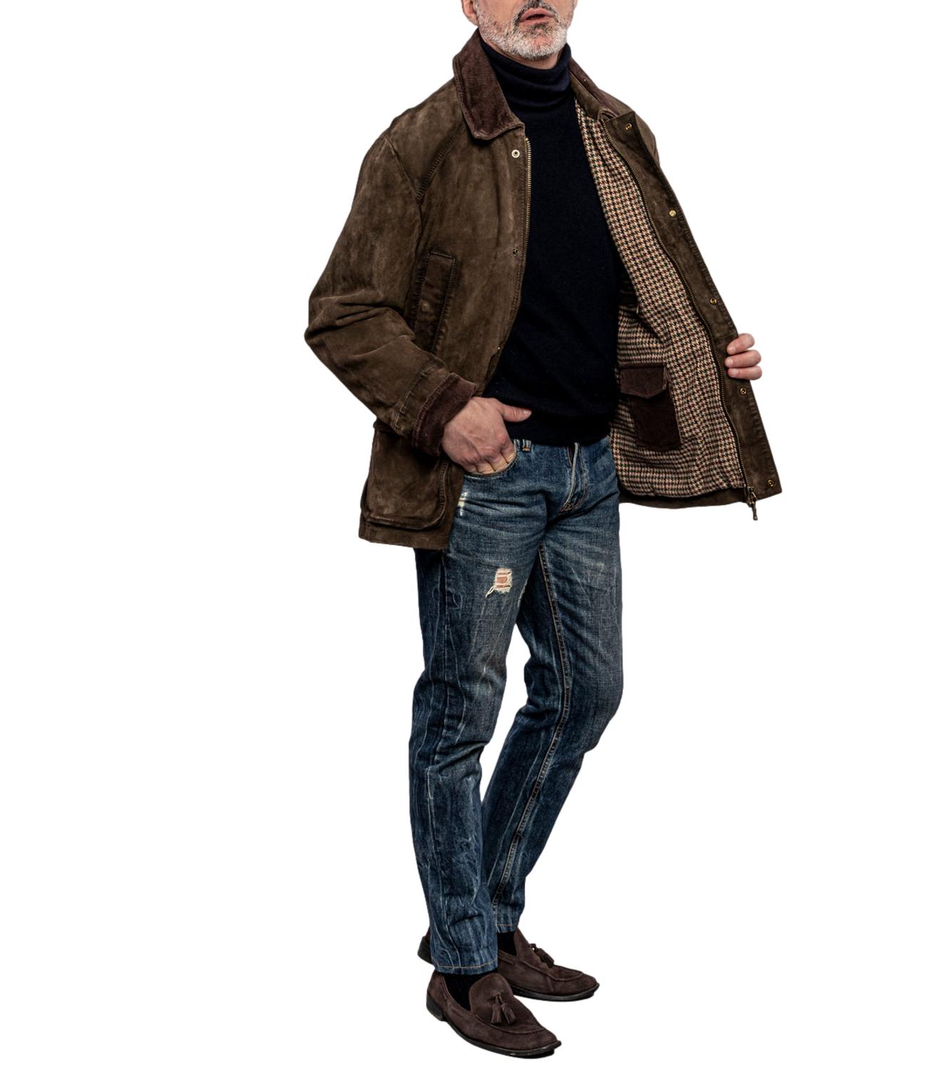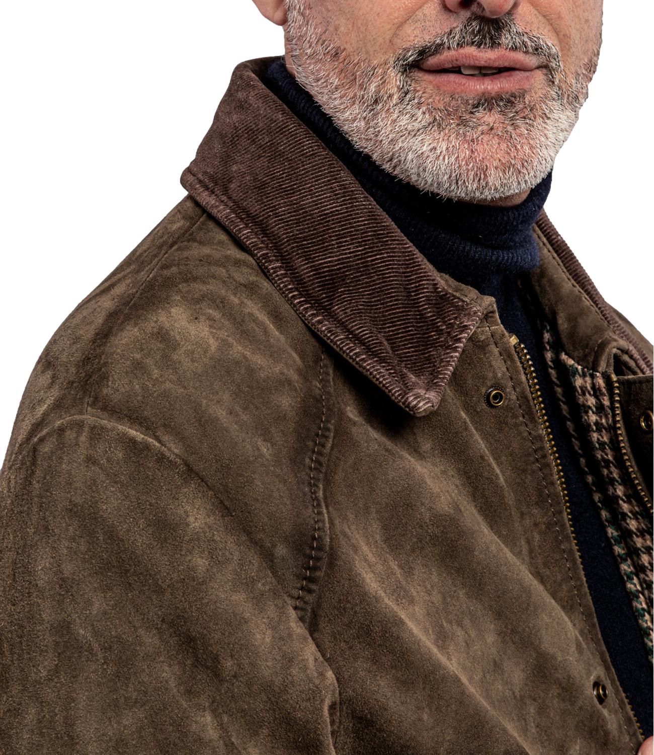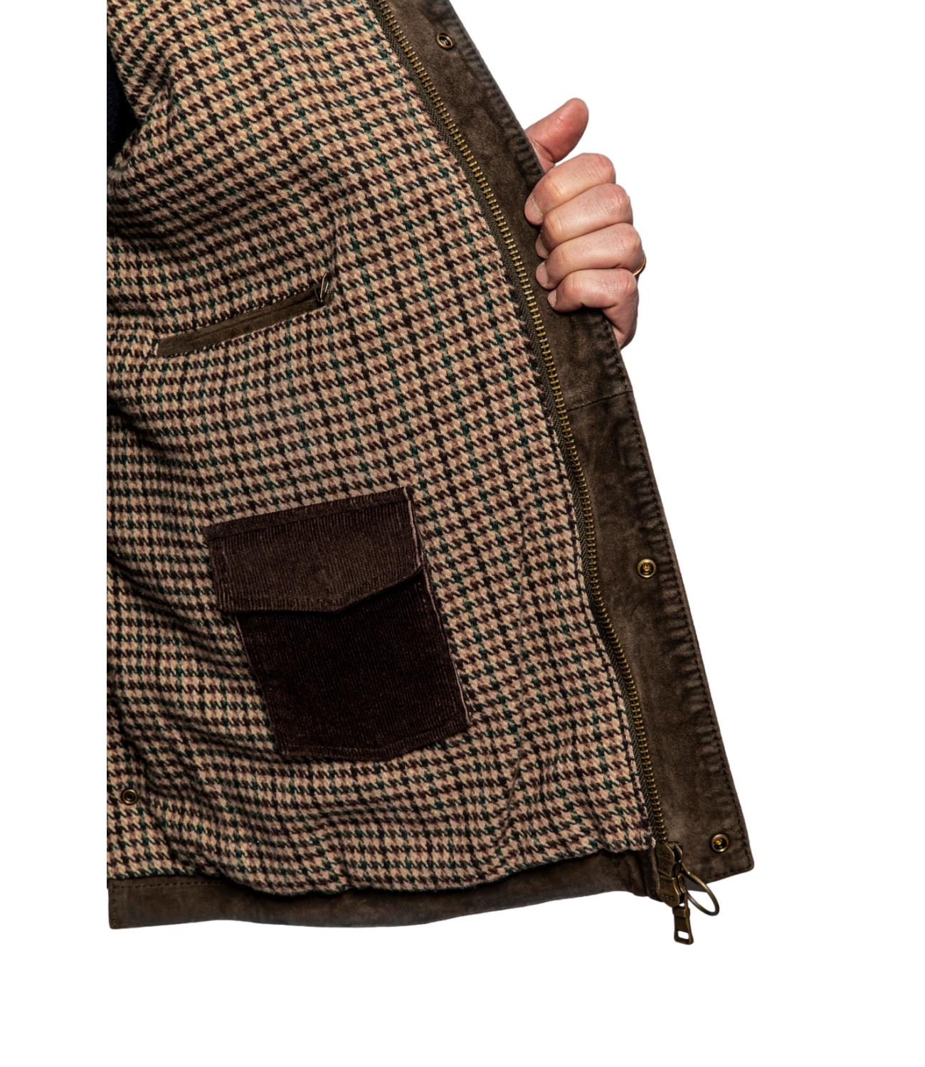 The Jack Leather giacca Balmoral verde in pelle modello stile Barbour con interno in lana trama piè de poule, colletto in velluto