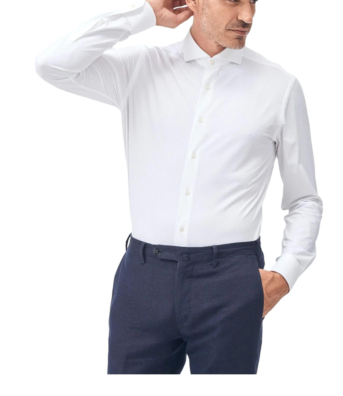 Camicia uomo con collo francese semi morbido, ideale per abbinamenti formali e casual. Realizzata nella vestibilità intermedia tailor fit, questo capo rispetta la migliore tradizione di camiceria sartoriale. Cuciture ad un ago con 7 punti per centimetro, adesivi di prima qualità, gambo su ogni bottone per una migliore tenuta degli stessi. Sono solo alcuni dei dettagli che rendono questa camicia indispensabile nel guardaroba maschile.
